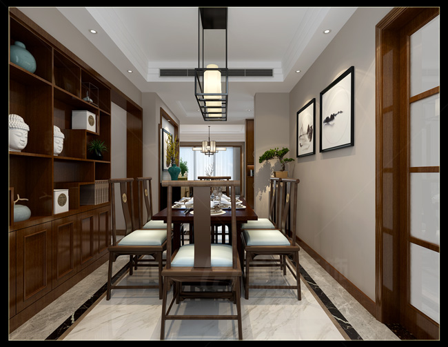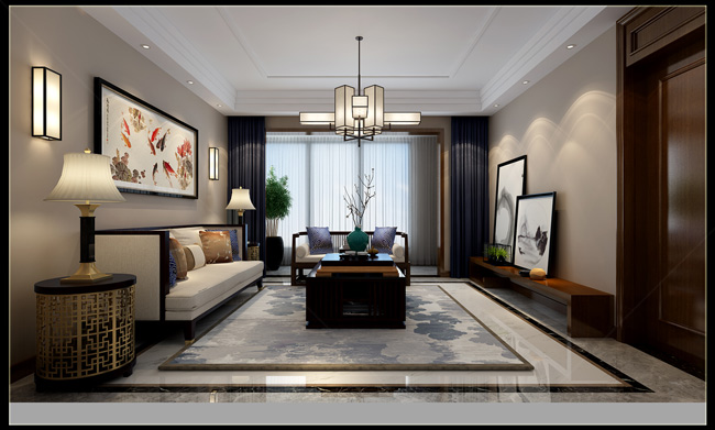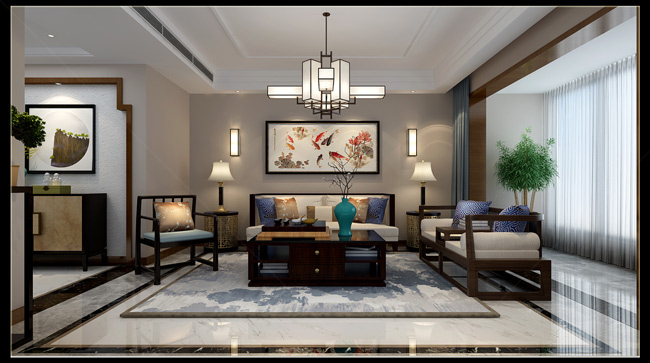 魯能公館153平中式風(fēng)格裝修案例效果圖