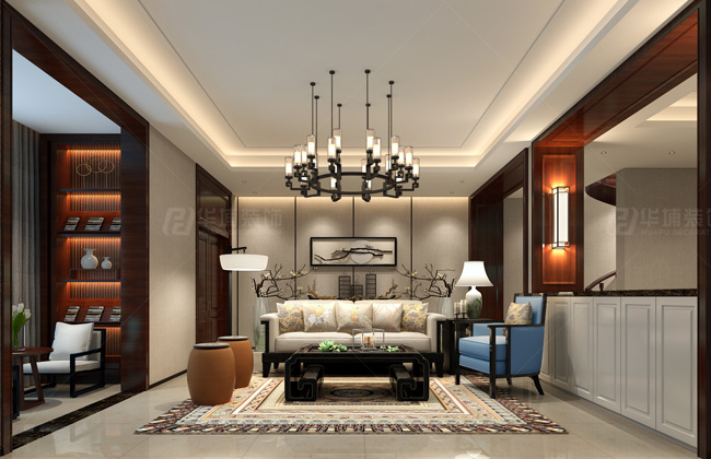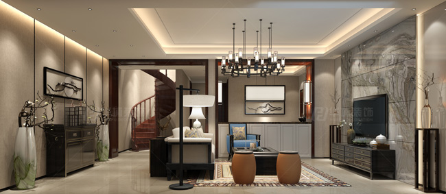 新田城300平聯(lián)排別墅新中式風(fēng)格裝修案例效果圖