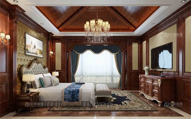 臥室,相對(duì)于其他空間比較簡(jiǎn)單,沒(méi)有過(guò)多的裝飾;床品抱枕等軟裝布置,再以床頭柜、吊燈點(diǎn)綴,相當(dāng)出彩,輕易將古典歐式的美感勾勒出來(lái)