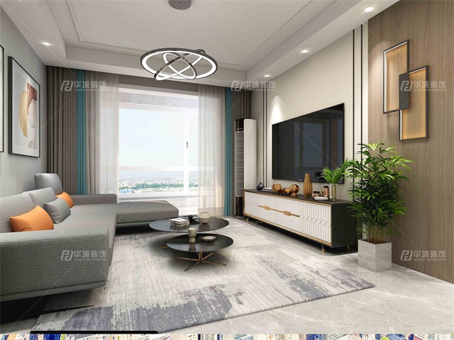 客廳設(shè)計(jì)效果,電視背景墻,背景墻結(jié)合現(xiàn)代流行金屬黑色線條