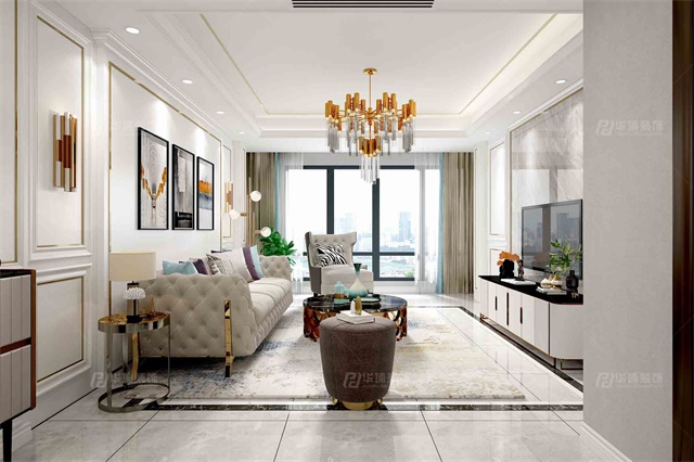 本案特點(diǎn):本案設(shè)計(jì)效果上融合輕奢和美式相結(jié)合,整體色調(diào)像銀裝素裹中靜寂的景色,白色的干凈明亮,素雅高貴,金色線條的點(diǎn)綴,是皇室貴族彰顯貴氣永恒的通用手法。