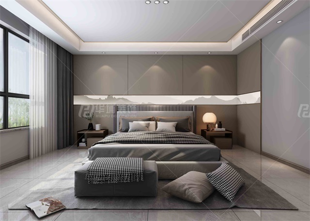 一樓主臥室通透大氣,舒適的燈光便于睡眠