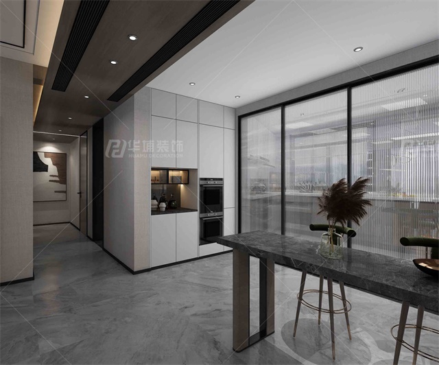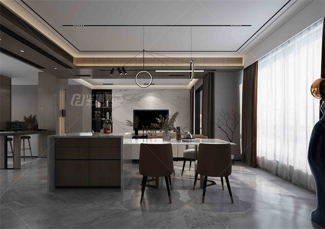 中西雙廚房設(shè)計(jì),可容納8-10人的長(zhǎng)桌構(gòu)筑起中國(guó)餐食禮儀,朝迎曦光,暮會(huì)煙霞,四時(shí)三餐,家人們可以在這里盡情享受料理與就餐的親昵時(shí)光。