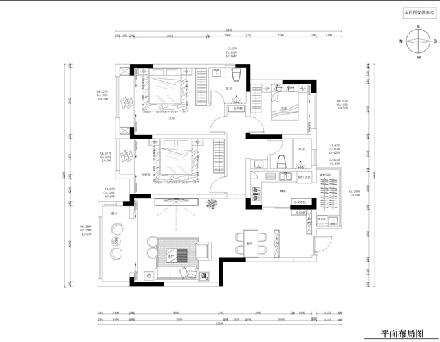 設(shè)計(jì)理念:整體風(fēng)格為新中式。寬敞的空間被分解成若多個(gè)功能區(qū)域,在原有的格局上重新劃分空間。