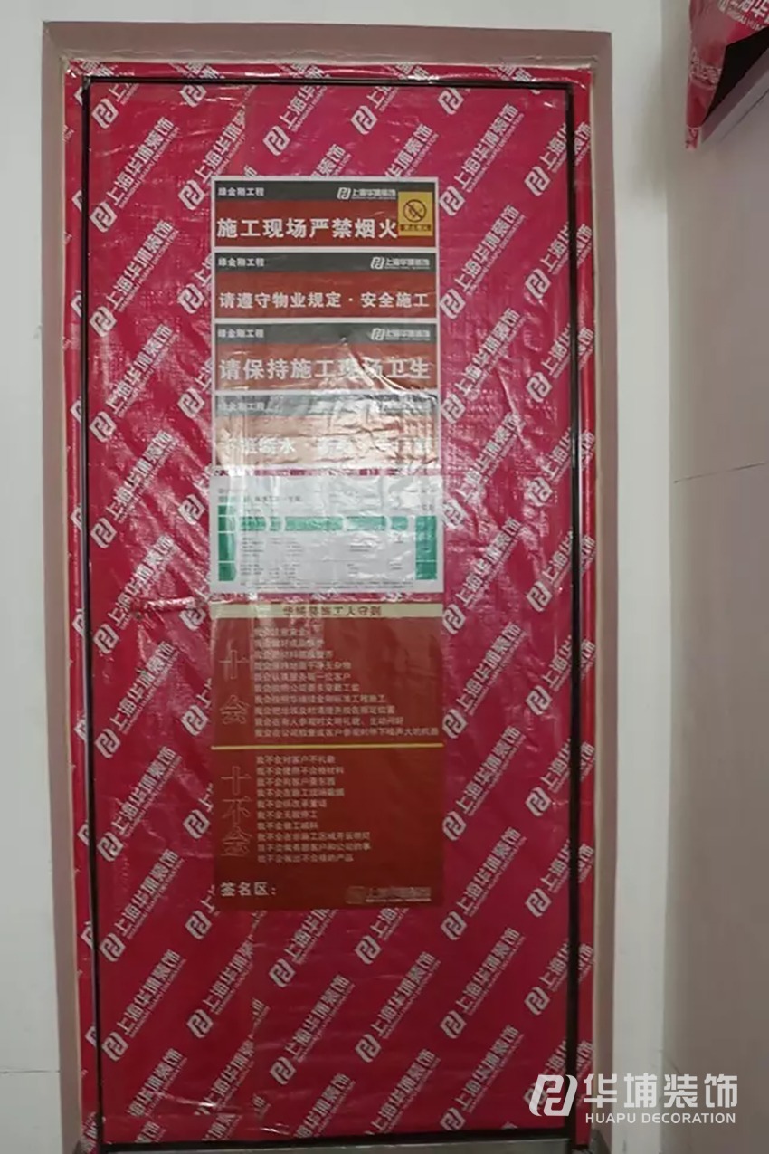 入戶門保護(hù)層上張貼施工要求,時(shí)刻提醒工人規(guī)范作業(yè)、安全生產(chǎn)。