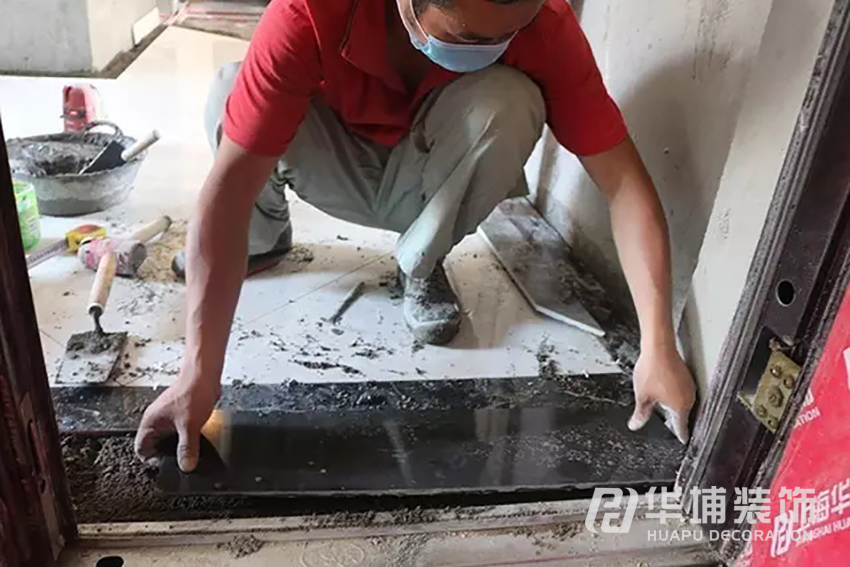 工人師傅正在鋪設(shè)入戶地磚,嚴(yán)謹(jǐn)細(xì)致,注重施工的每一個(gè)細(xì)節(jié)。
