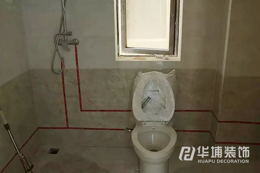 衛(wèi)生間獨(dú)特的工藝——墻磚壓地磚,工人師傅現(xiàn)場施工,手法細(xì)膩。