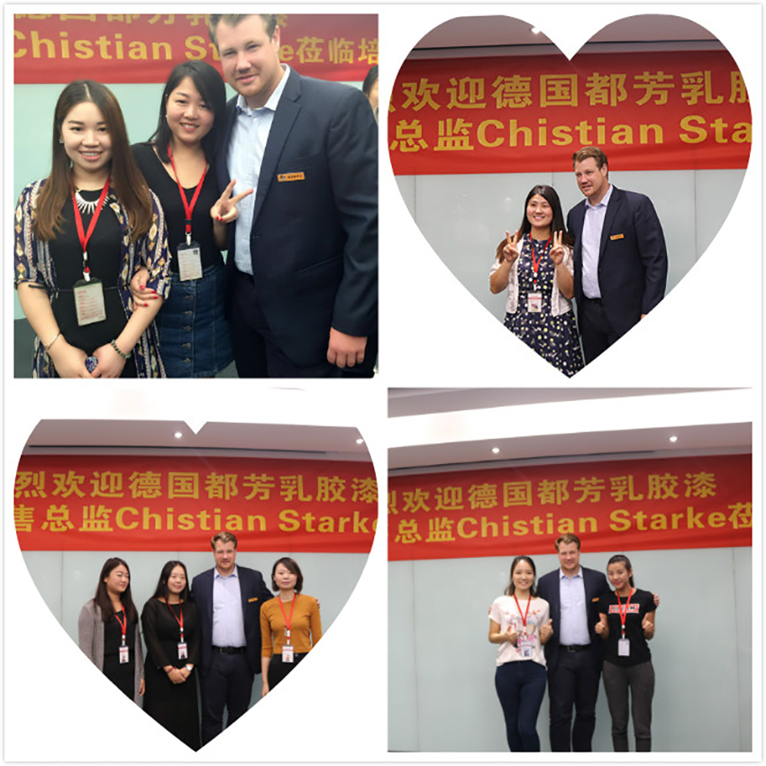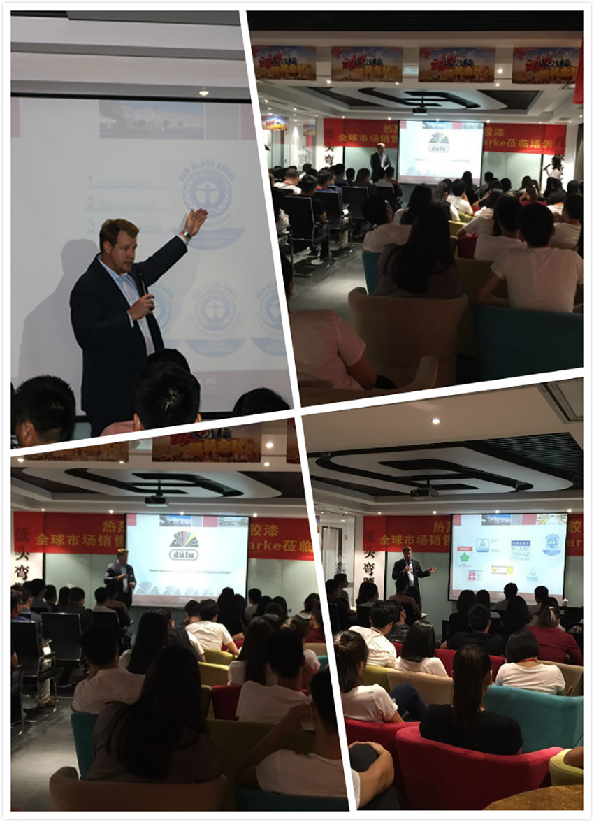 為增強(qiáng)合作共贏,讓設(shè)計(jì)專家充分了解德國“都芳”漆,更好的服務(wù)客戶,華埔裝飾特邀請德國“都芳”漆全球市場銷售總監(jiān)Chistian Starke(克里斯汀·施達(dá)克),對華埔裝飾所有設(shè)計(jì)專家進(jìn)行產(chǎn)品培訓(xùn)以及涂料行業(yè)技術(shù)交流。