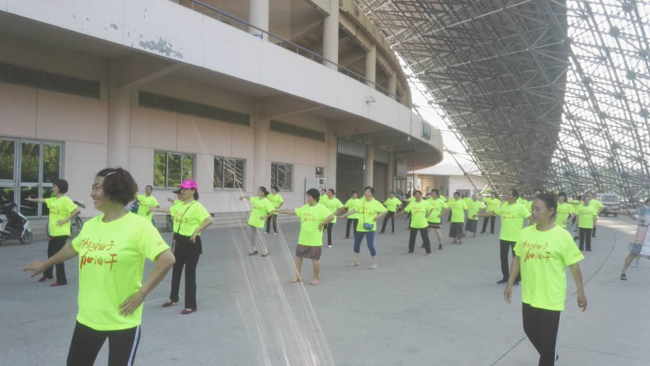 看這大姐吶喊的架勢,一點不輸十七八的小姑娘!精神面貌很重要!
