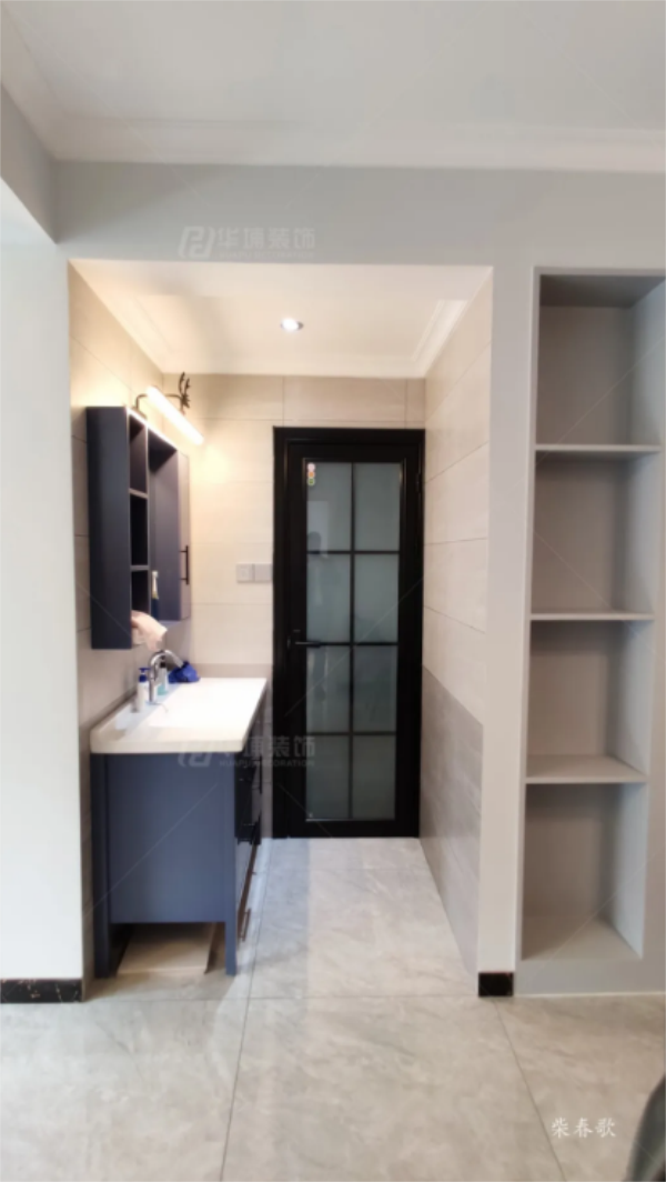 原始戶型里的衛(wèi)生間是沒(méi)有干濕分區(qū)的,設(shè)計(jì)師進(jìn)行了改造,將干區(qū)單獨(dú)分離出來(lái),后期會(huì)再做一個(gè)隔斷,起到防水和隔絕的效果。衛(wèi)生間內(nèi)部合并了廚房原來(lái)的陽(yáng)臺(tái),將整個(gè)空間都放大了。