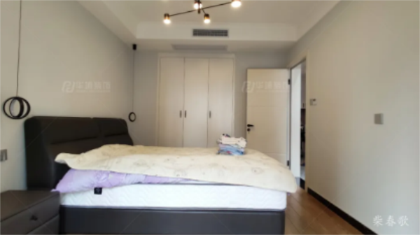 次臥空間以白色打底,將干凈素雅的感覺(jué)呈現(xiàn)。柜子做的是意利寶定制,后現(xiàn)代簡(jiǎn)約風(fēng)格,木紋色+灰咖色,高級(jí)感非常強(qiáng)。
