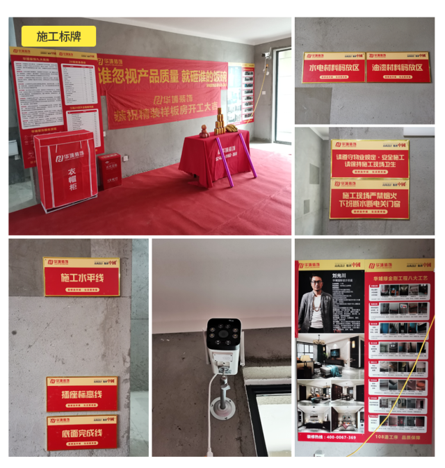 開工前準(zhǔn)備,除了第一期講到的產(chǎn)品保護(hù)外,還有各種標(biāo)識(shí)、KT板的張貼,包括: