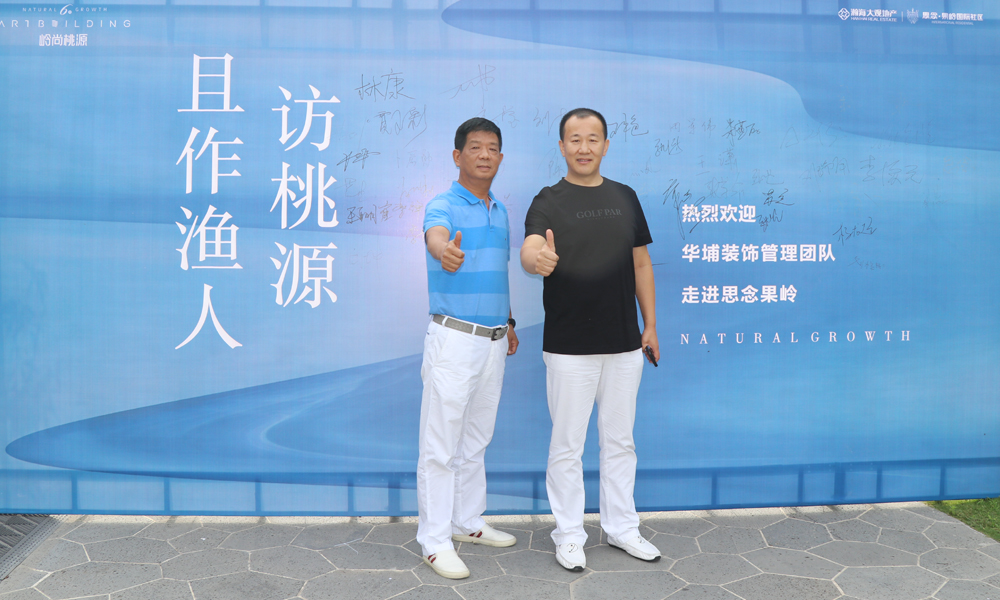 2020年7月1日,應(yīng)瀚海大觀地產(chǎn)之邀,華埔裝飾全體中高層管理人員,在董事長(zhǎng)張革命帶領(lǐng)下,前往思念果嶺參觀交流。