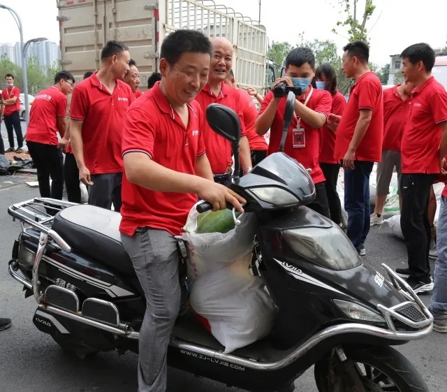 張董、賈總親自發(fā)西瓜,確保清涼送到每一位華埔家人手中!