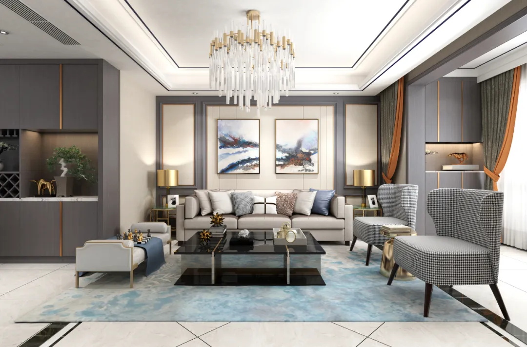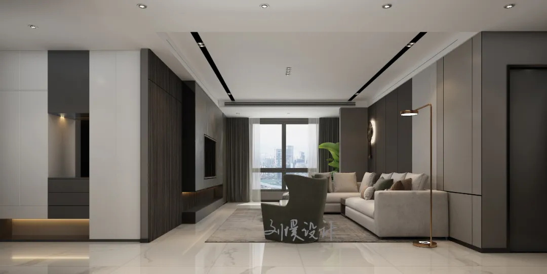 設(shè)計(jì)理念:以黑白灰三色調(diào)和,無(wú)主燈+線條感創(chuàng)造空間藝術(shù)