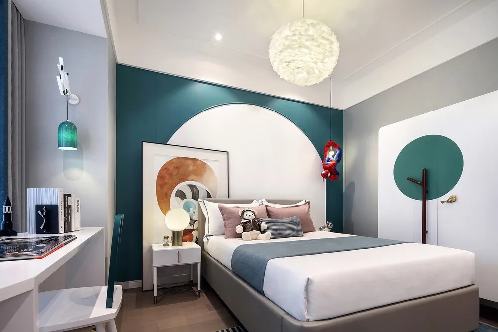 許子言的房間做了榻榻米,在兼顧實(shí)用的同時(shí)還增加了一個(gè)滑滑梯,供孩子玩耍。還有進(jìn)門處亮黃色的象腿椅,矮潤(rùn)圓胖的,讓整個(gè)兒童房增加了活力。