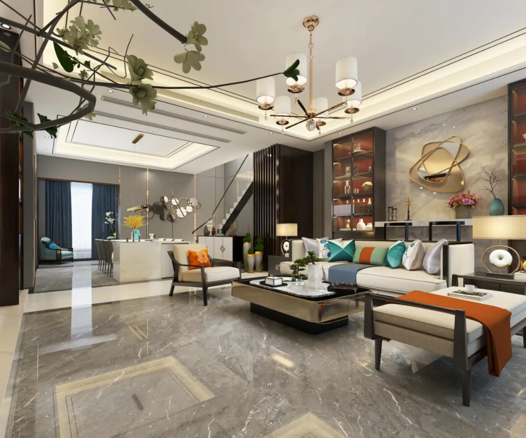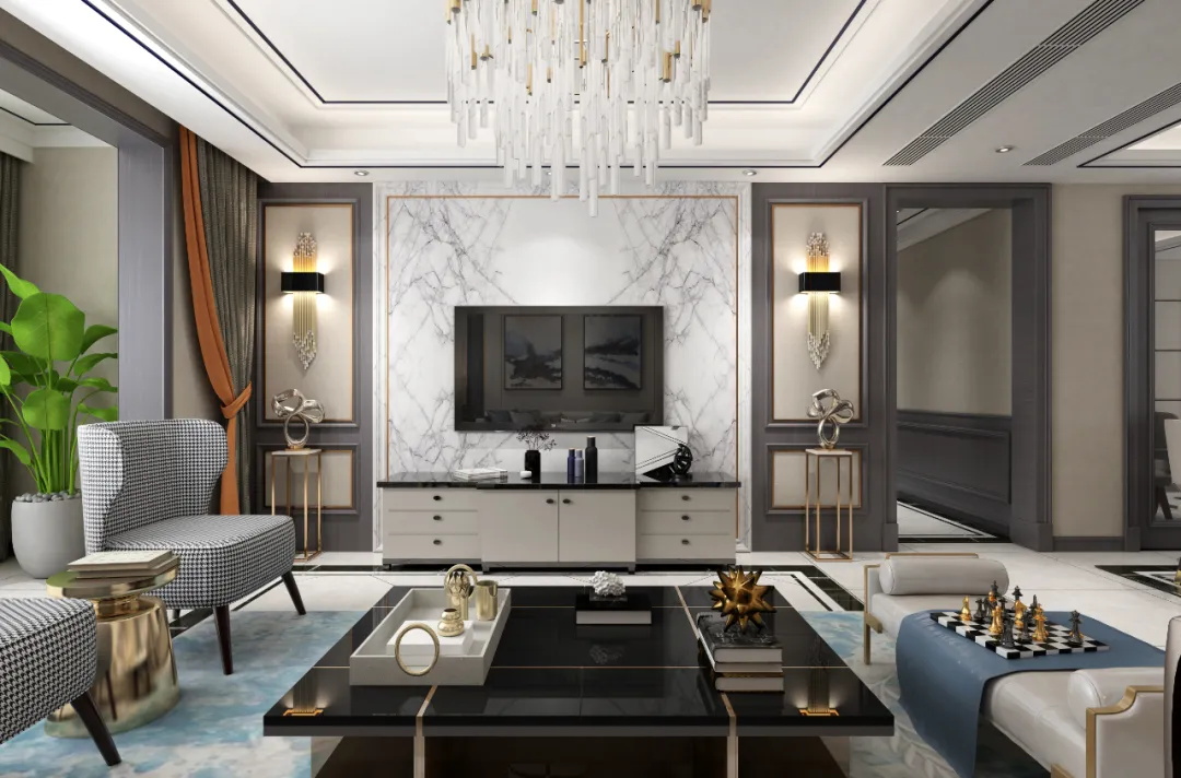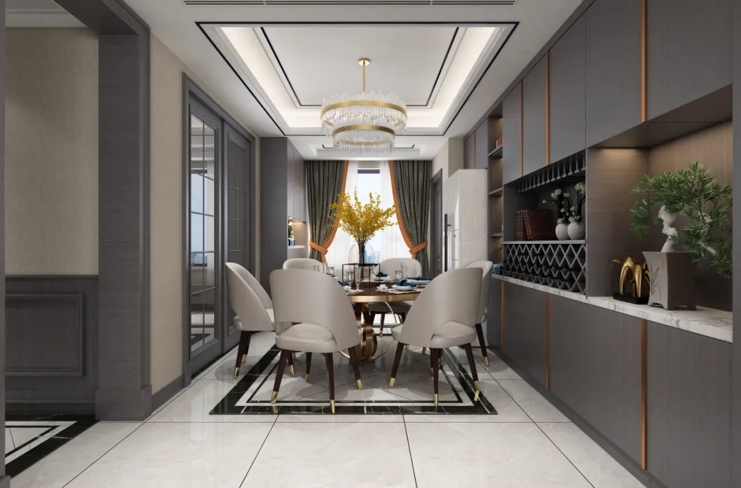 設(shè)計(jì)理念:以最經(jīng)典的現(xiàn)代設(shè)計(jì)筆觸,令金屬、皮革、石材等元素于空間協(xié)調(diào),演繹低調(diào)的奢華。