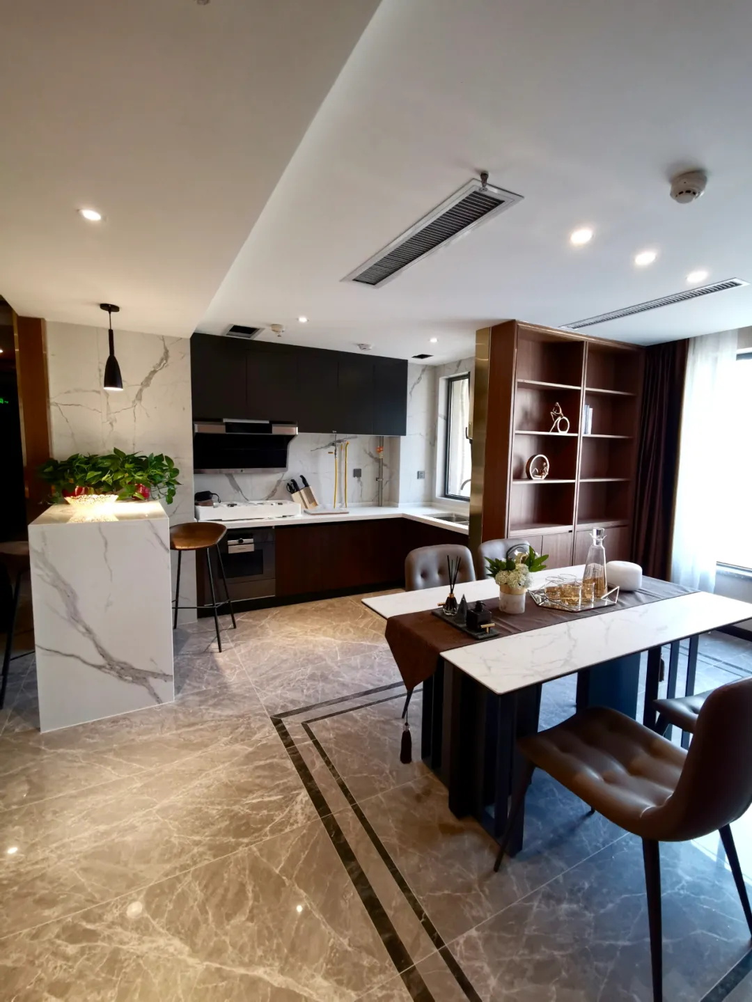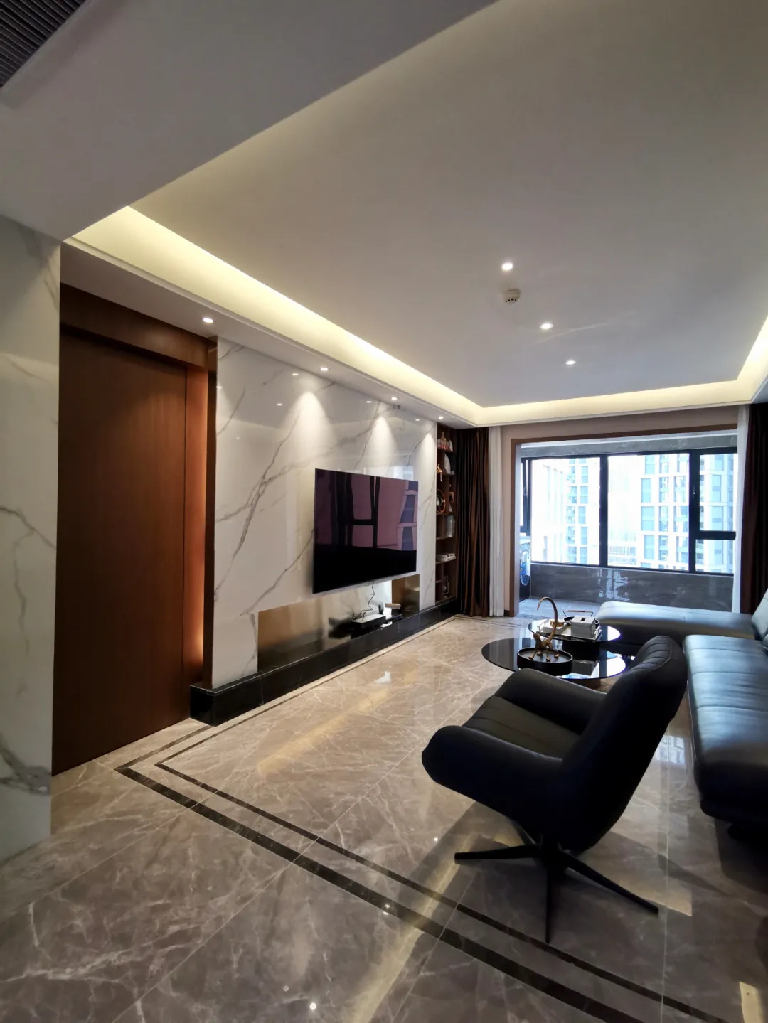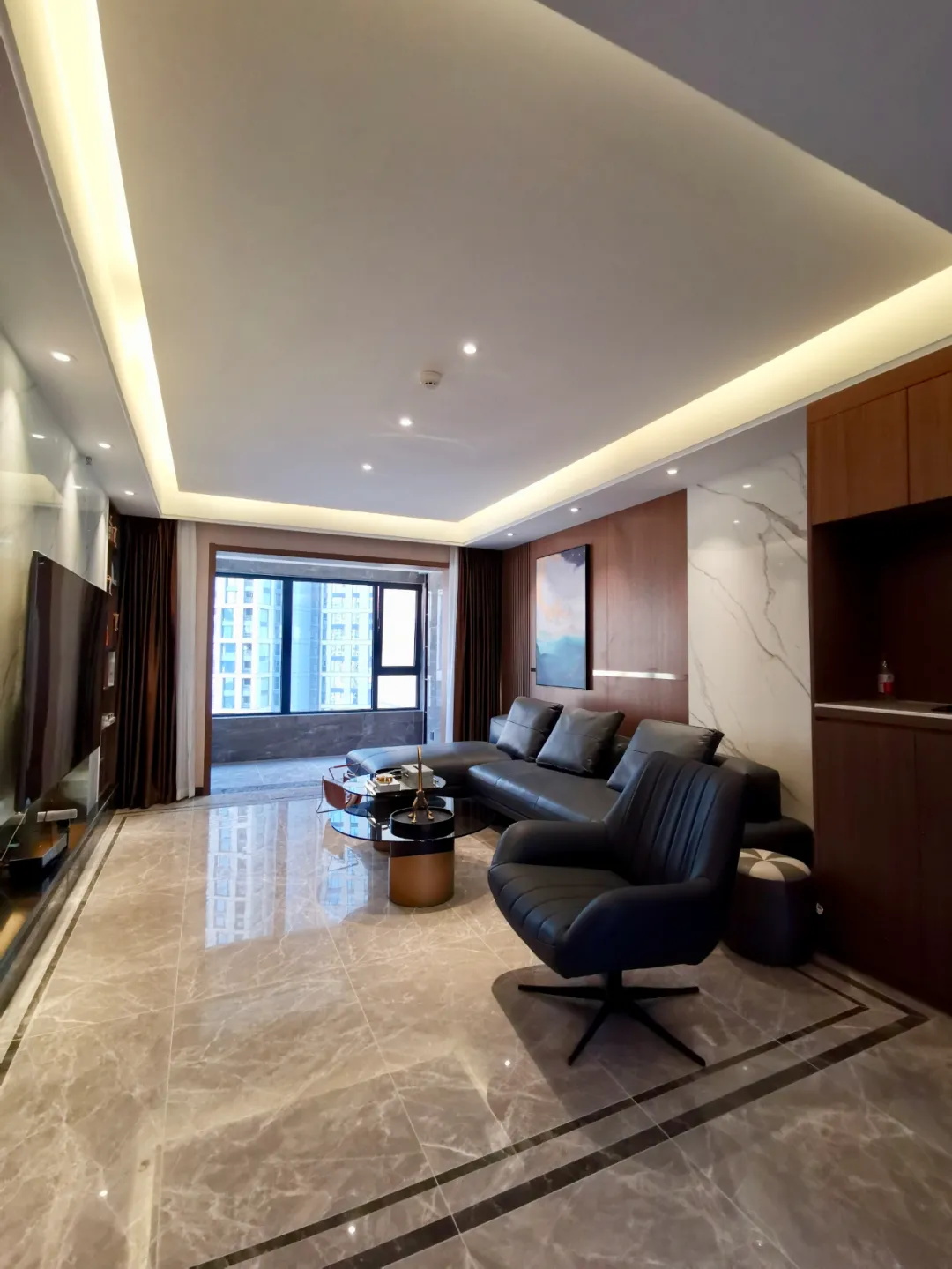 先來看一組現(xiàn)代輕奢風(fēng)格實(shí)景,我們叫它“城市現(xiàn)代化”!整個空間很有質(zhì)感,色調(diào)沉穩(wěn),美學(xué)設(shè)計(jì),沒有太過濃郁的生活氣息,滿滿的精干。
