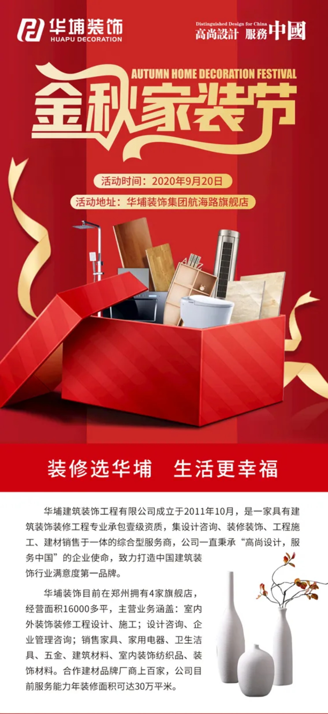 不光要會(huì)裝修,還要惠裝修!看過了攻略,清楚了門道,別忘了來領(lǐng)取你的專屬福利!9月20日,華埔裝飾金秋家裝節(jié),千萬(wàn)豪禮讓全城。