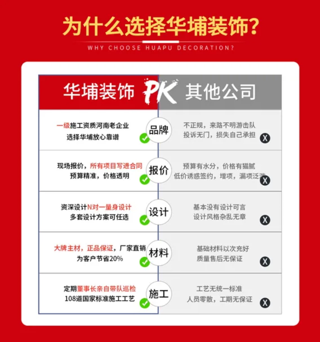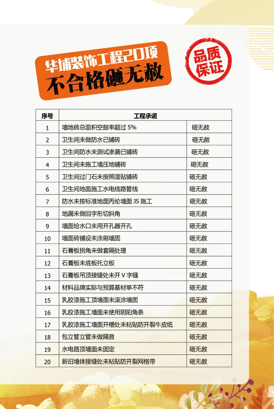 華埔裝飾更有六大免費(fèi)服務(wù),總經(jīng)理親自點(diǎn)派“金牌項(xiàng)目經(jīng)理”,工地?cái)z像頭實(shí)時(shí)查看施工進(jìn)展,“一起裝”全民監(jiān)工、《金牌樣板間協(xié)議》等品質(zhì)服務(wù)。