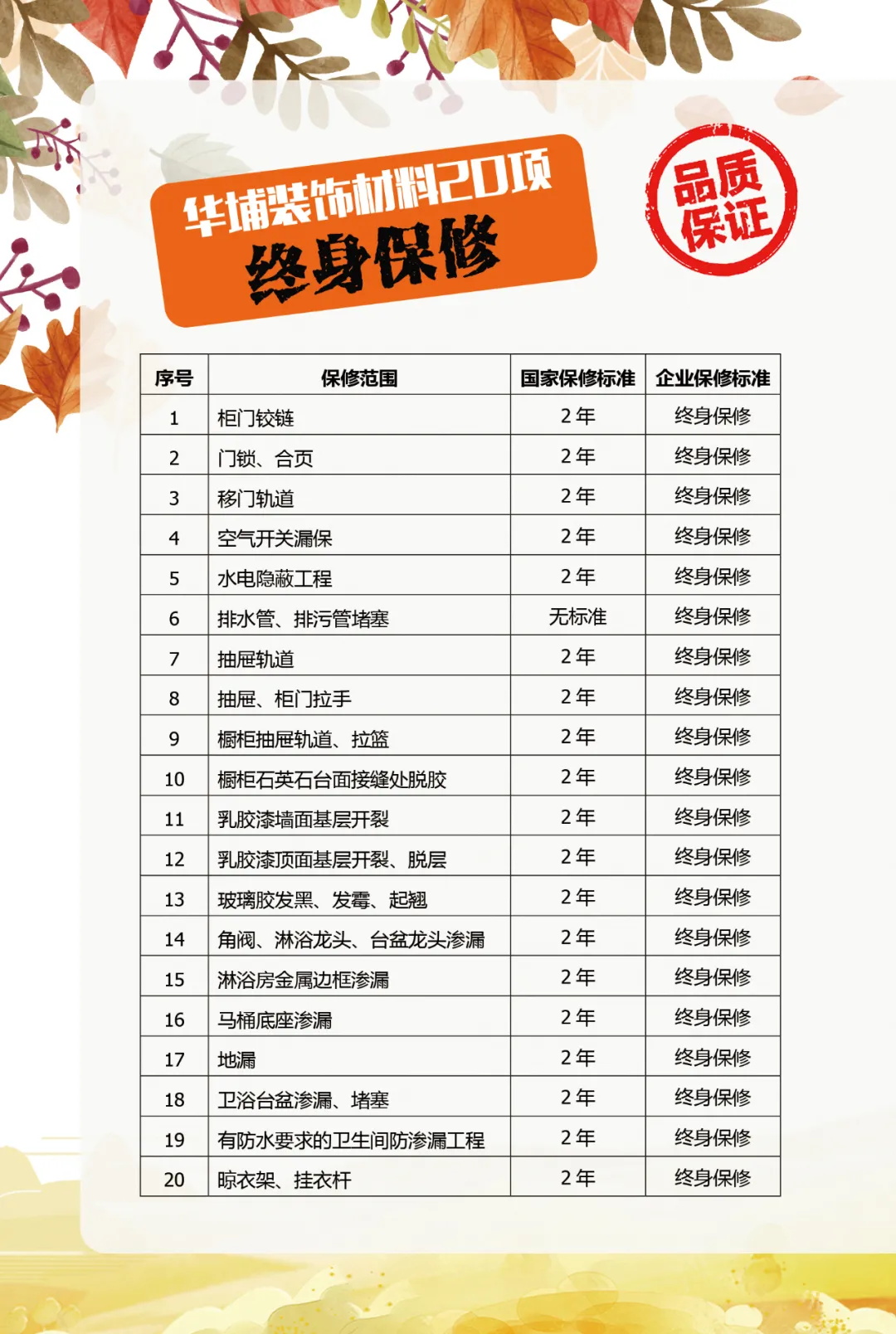 20項(xiàng)終身保修,解決你入住后的各種小麻煩。