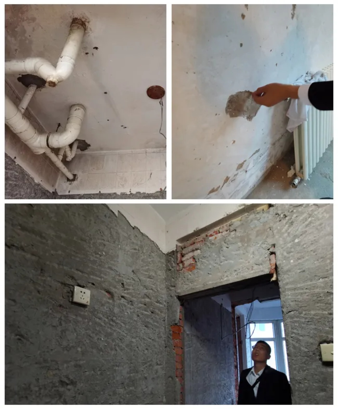 三面:墻、地、頂面在翻新前,要查看墻體里是否有“壁癌”。如果出現(xiàn)開裂、脫皮的現(xiàn)象,原墻面需要全部鏟除,膩子更換為耐水膩子。地面如果是全翻,需鏟平。地面如果是空心預制板結構,無法開槽做水電線路暗埋處理。