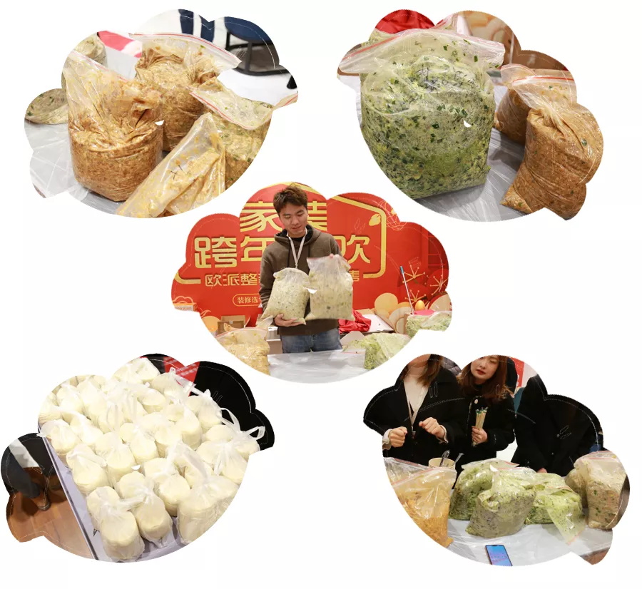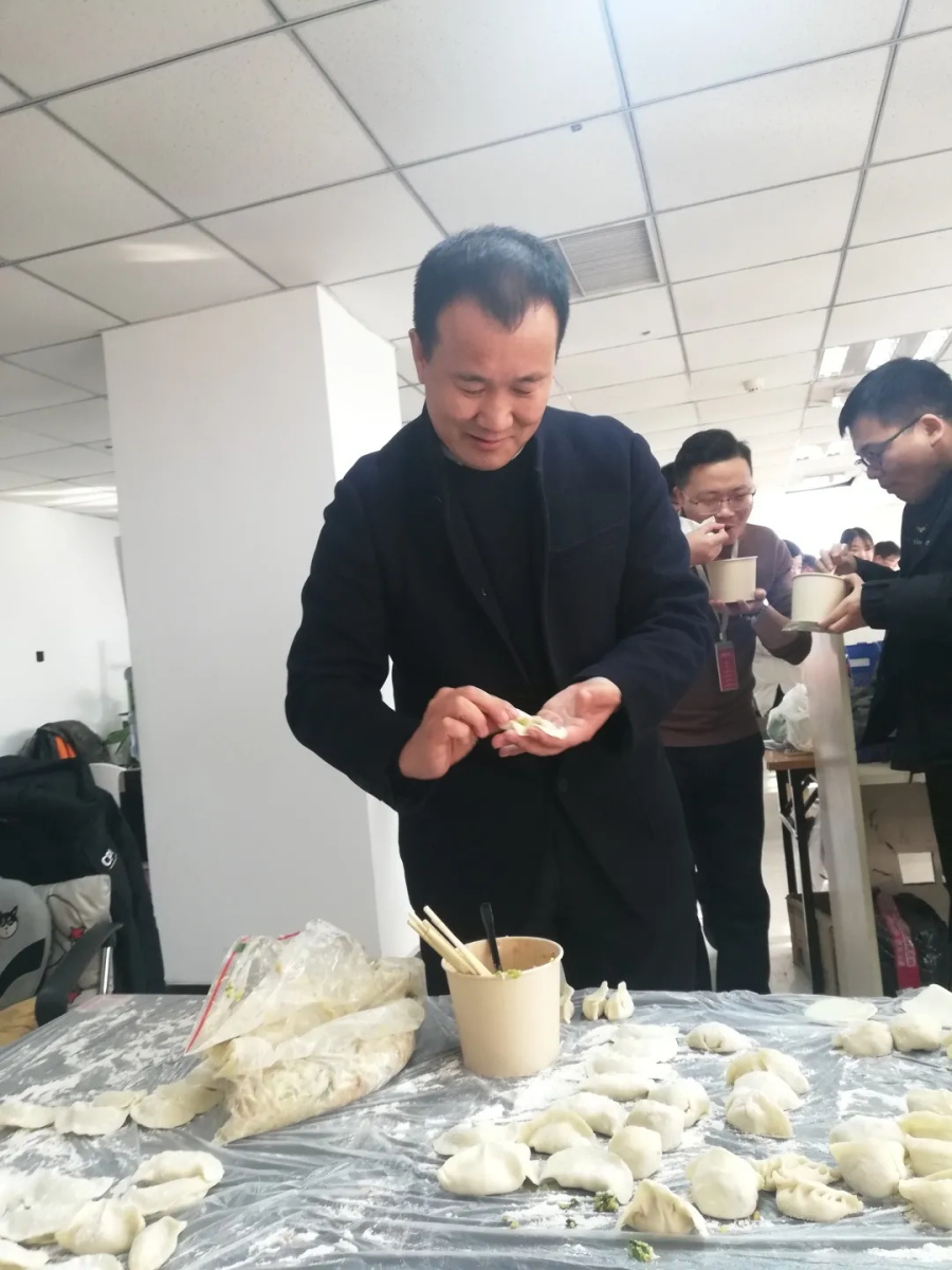 排隊領過皮和餡,就開始包餃子了!包餃子是最熱鬧的時候,張董作為大家庭中的家長,帶領大家包餃子,其樂融融。