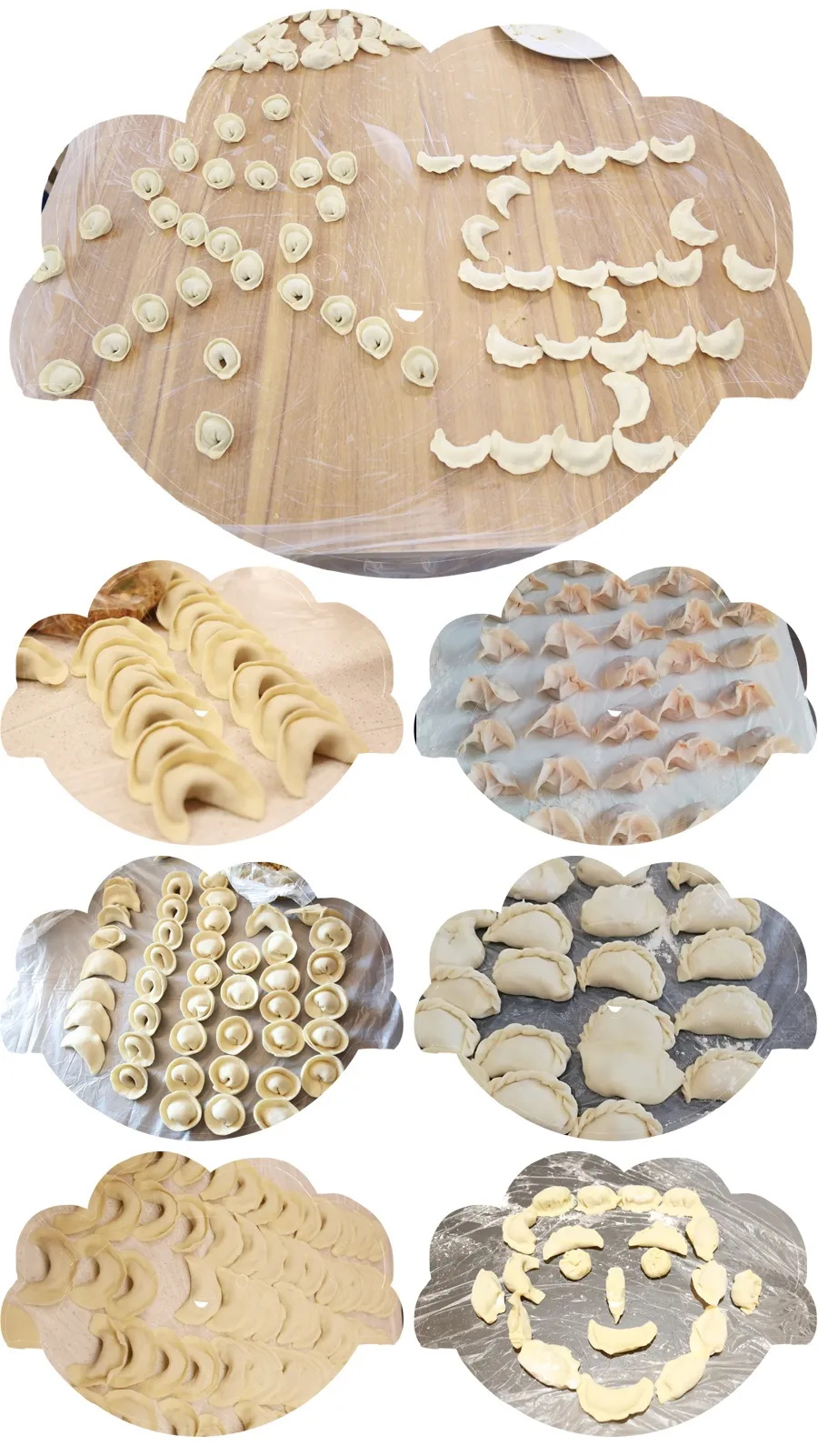看,有長得像金元寶一樣的餃子,有的像耳朵,有的像麥穗,小伙伴們的手藝太棒了!