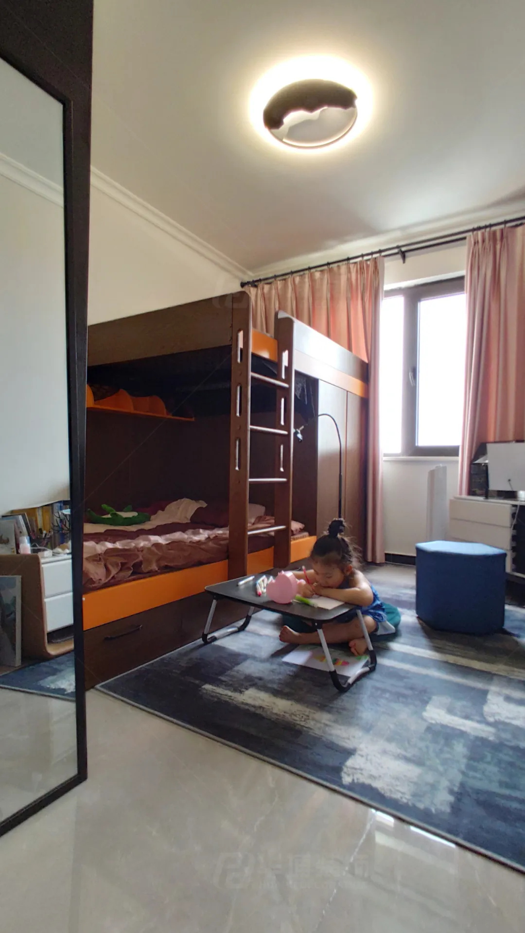 兒童房個(gè)性、時(shí)尚,臟粉與肉粉的墻漆劃分,上下鋪的合體設(shè)計(jì),不同需求的衣柜,讓整個(gè)空間大放異彩。當(dāng)小朋友席地作畫,以兒童房做景,這畫面好溫馨!