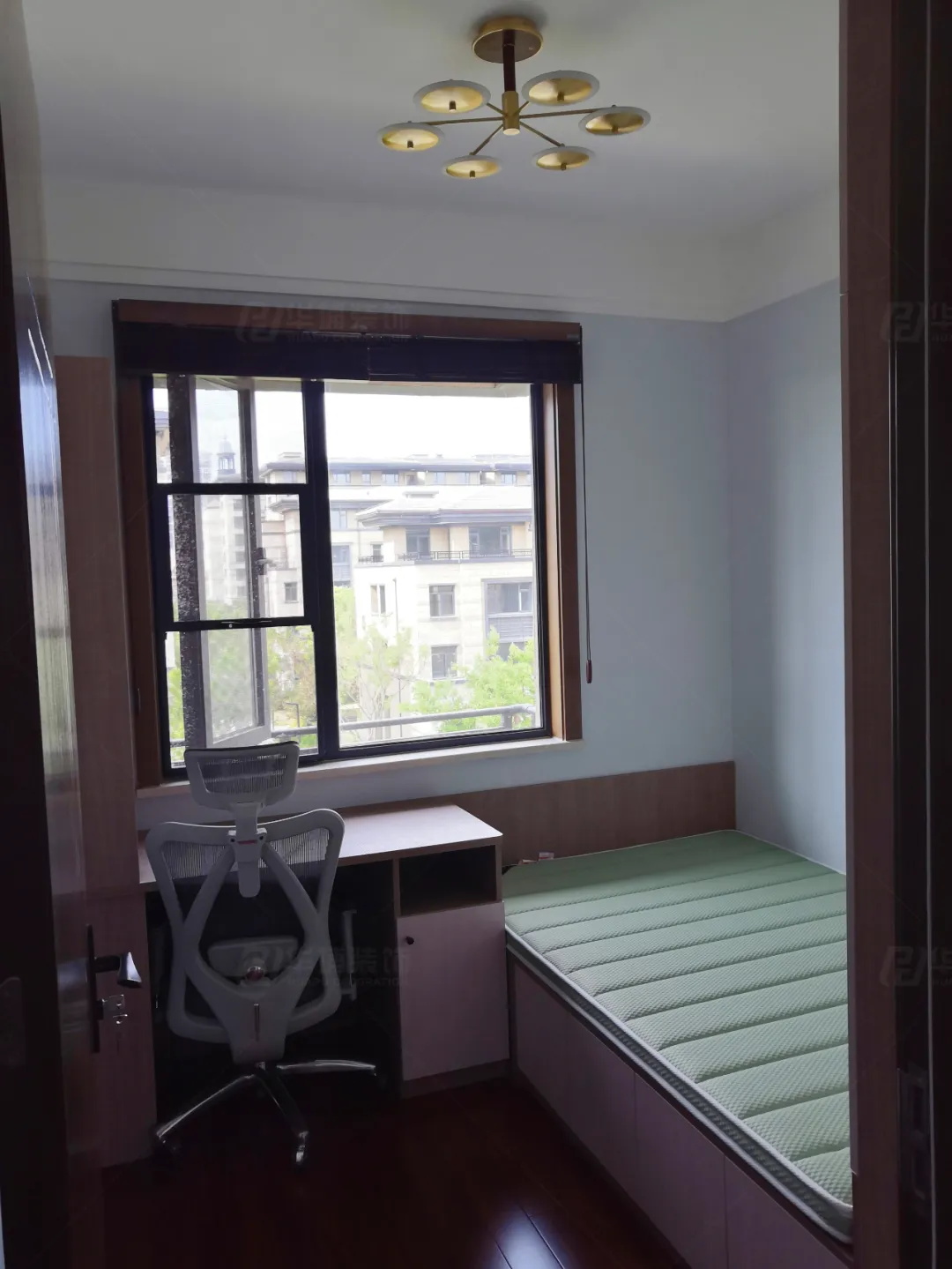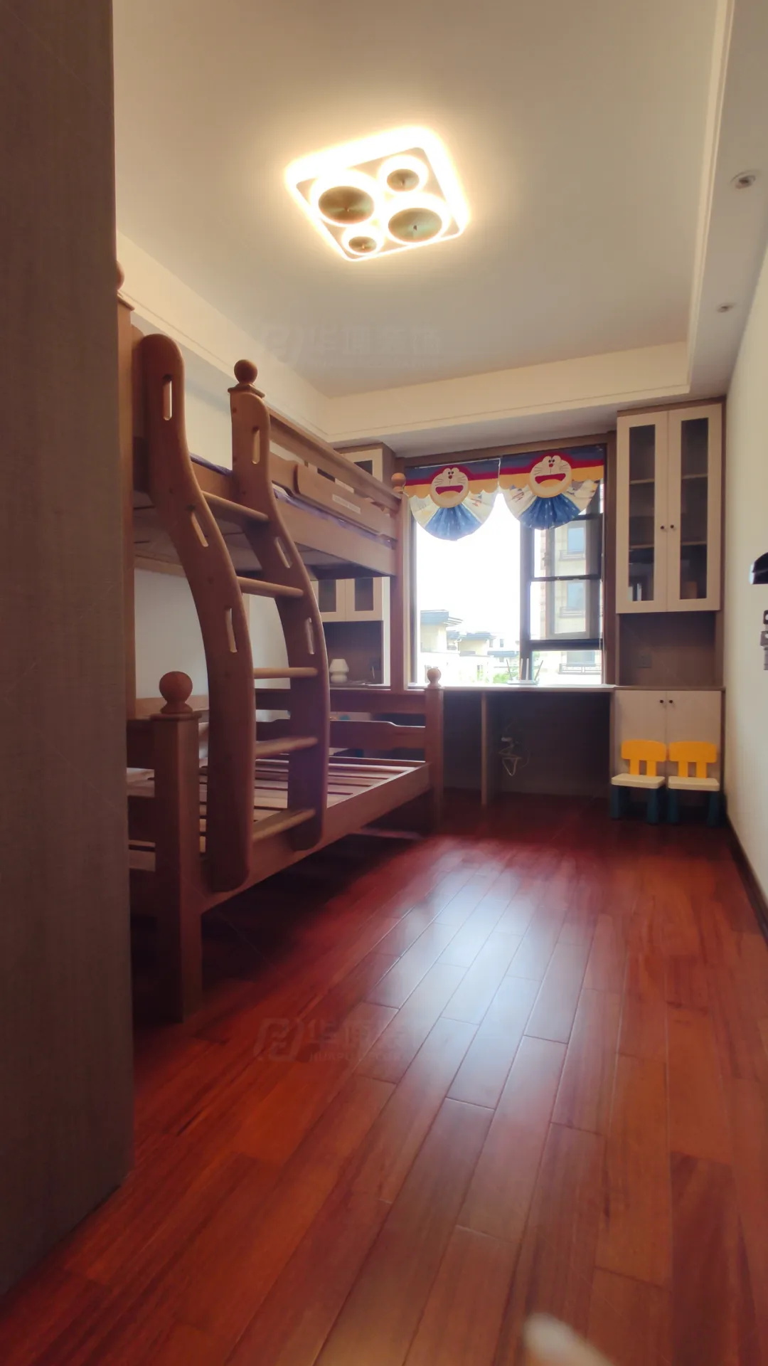 因?yàn)榧依锸莾蓚€(gè)小孩,所以做了上下鋪的設(shè)計(jì),方便照顧,增進(jìn)陪伴??看霸O(shè)計(jì)了書桌臺(tái)和書柜,注意是分體設(shè)計(jì),可以做到小朋友不爭(zhēng)搶、不打擾。