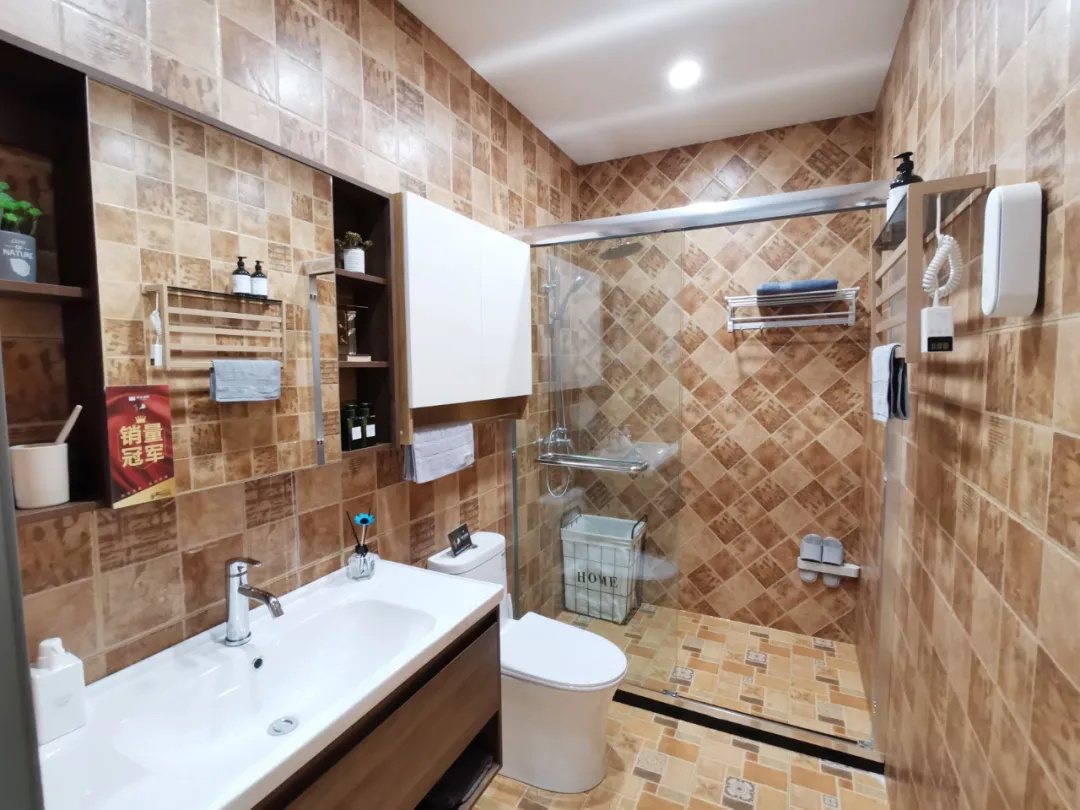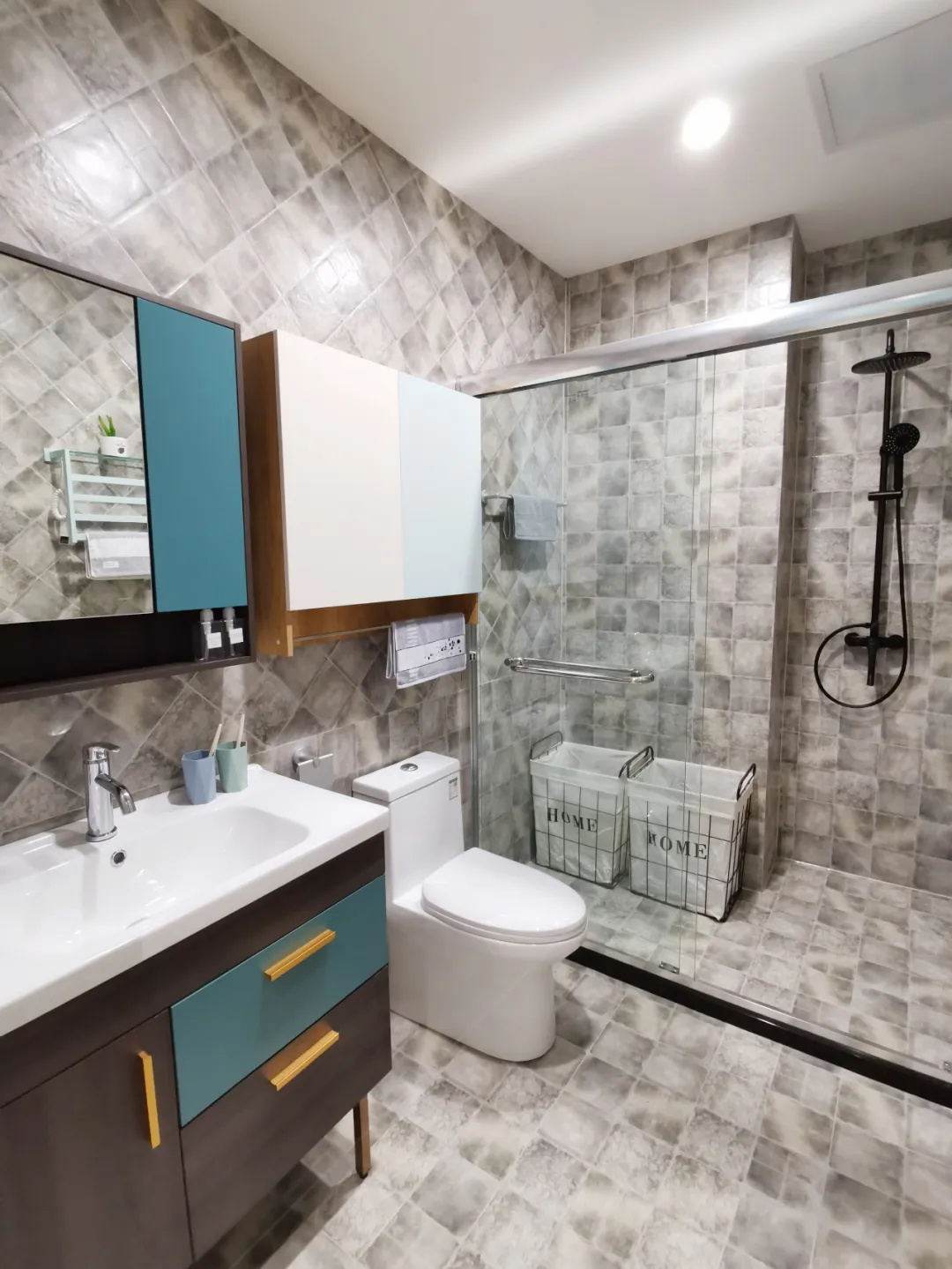 衛(wèi)生間干濕分離,玻璃淋浴房做隔斷,隔絕水汽,豐富空間。