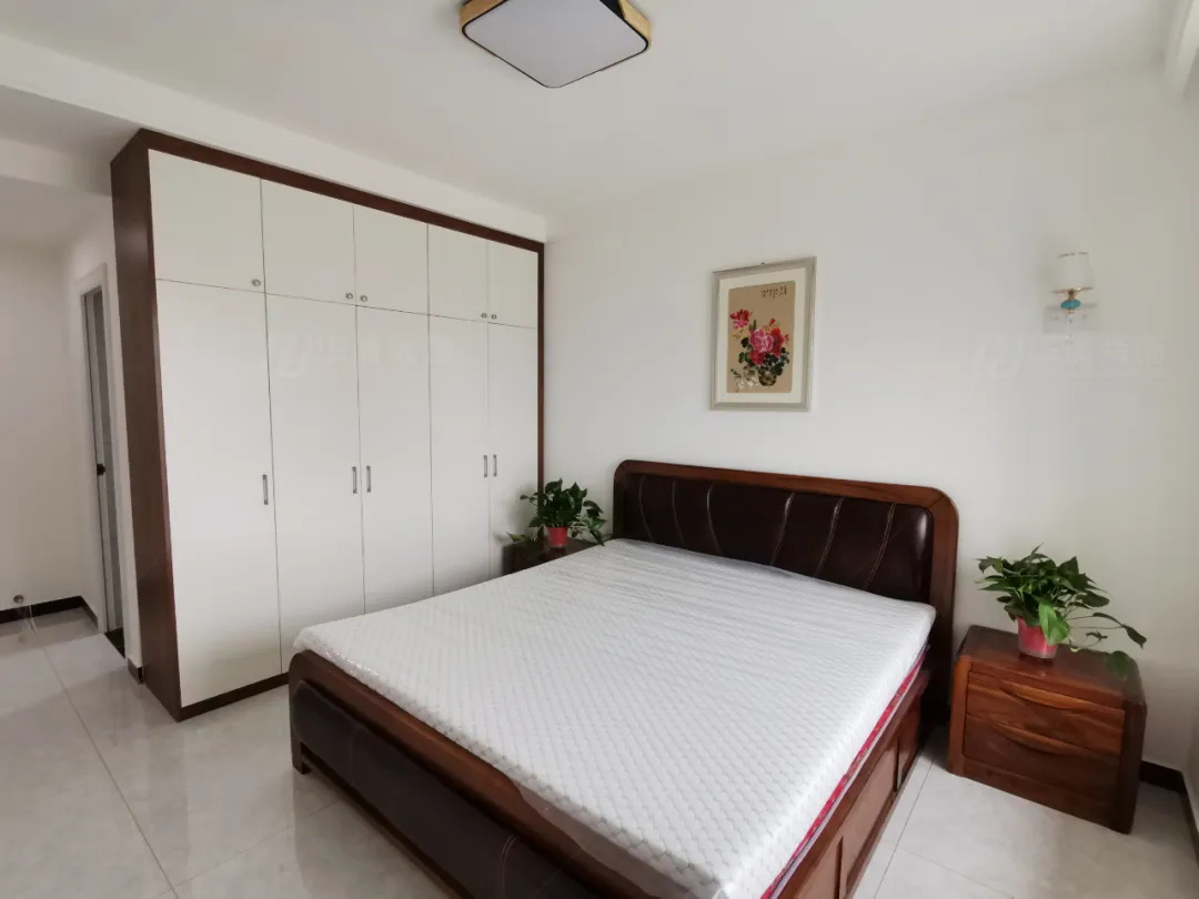 臥室里陳設(shè)從簡(jiǎn),配色單一,唯一的亮色系來自床頭靠背,雖然不華麗,但足夠溫馨。