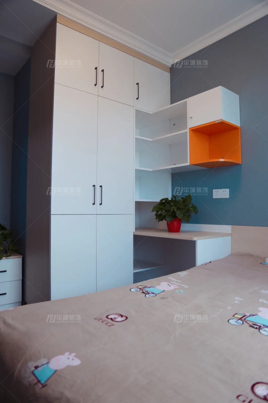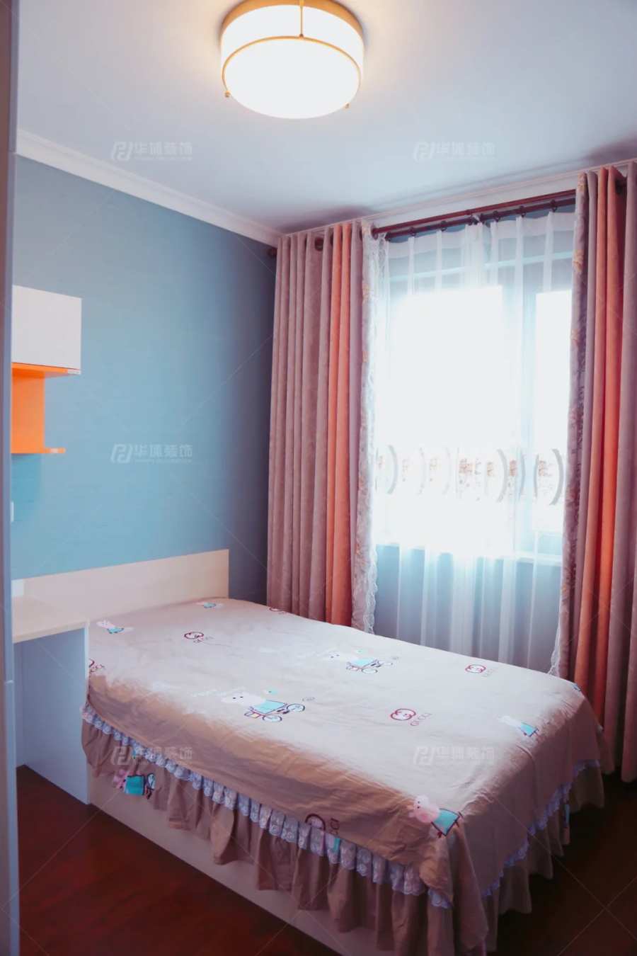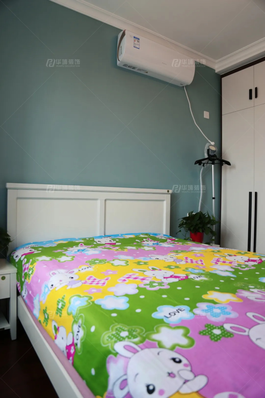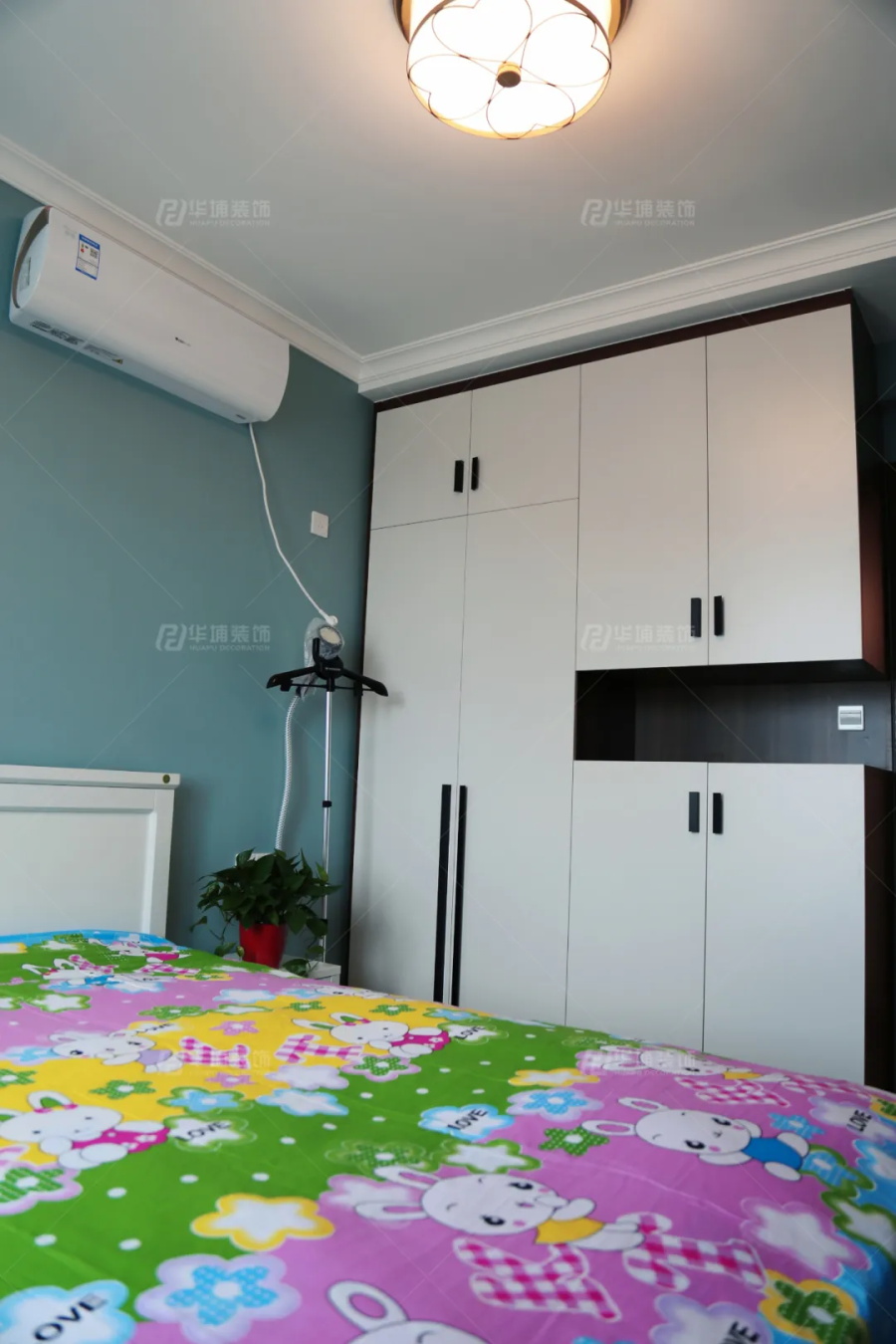 兒童房是留給小朋友偶爾來住的,莫蘭迪配色,花哨的床品,襯托得整個空間活潑又跳脫。