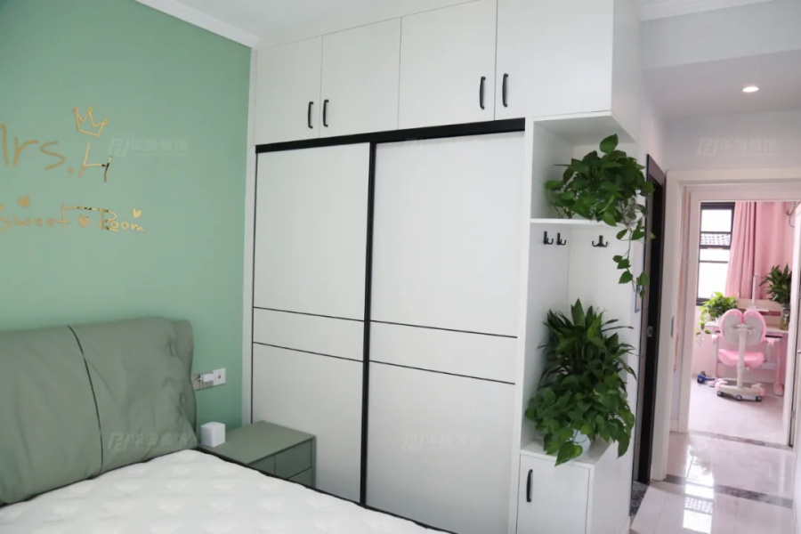 綠色是主空間色,作為清新中性的色彩,它自然而素雅,給人亮眼、元?dú)獾臍赓|(zhì)感。衣柜轉(zhuǎn)角做了圓弧設(shè)計,避免小朋友磕碰,貼心的細(xì)節(jié)處理,滿滿的幸福感。