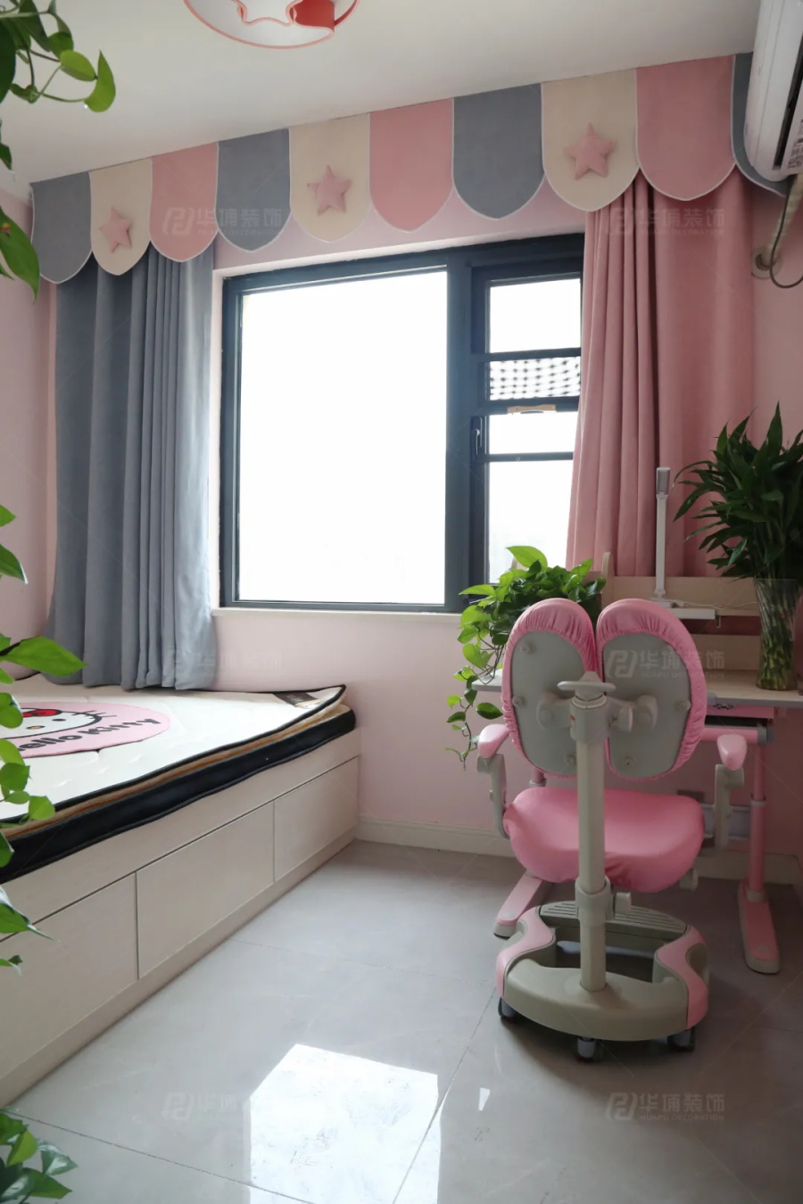 這是小公主的房間,入眼即萌寵。煙灰粉、純凈白,將小朋友干凈純粹的童真書寫。女兒房空間有限,采用了榻榻米+衣柜+靠窗書桌的形式呈現(xiàn),留最大的空間給小朋友戲耍。