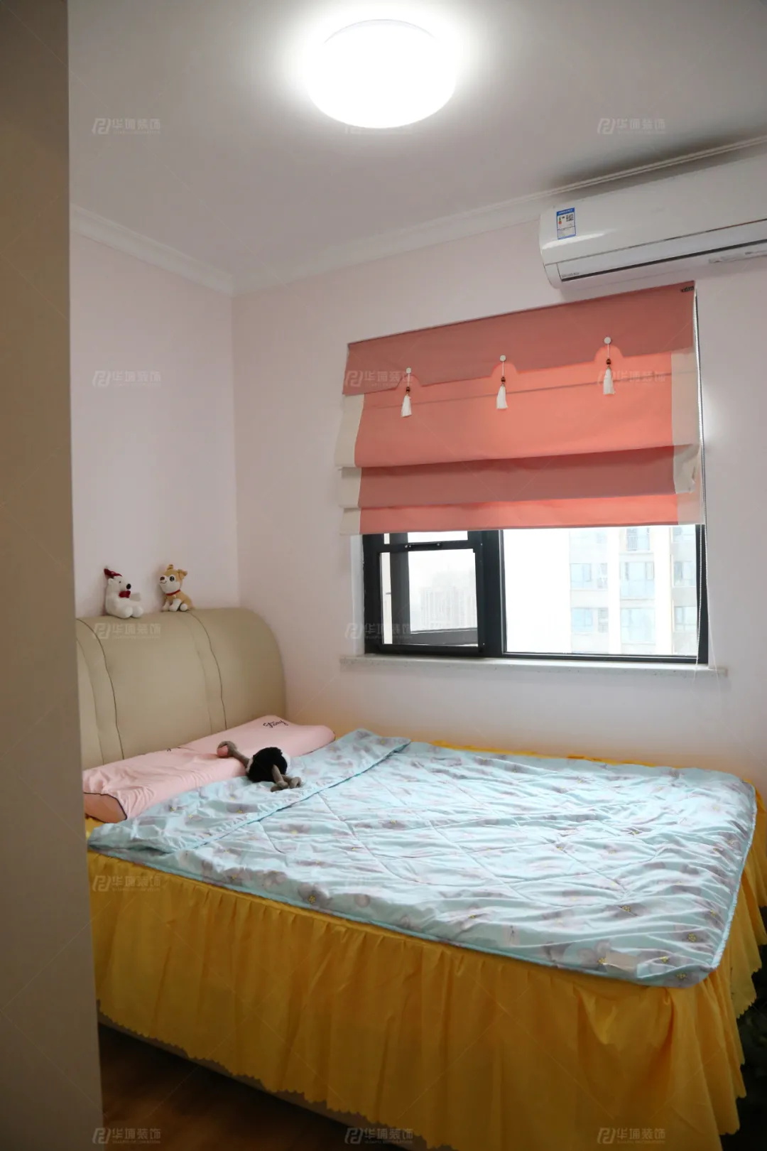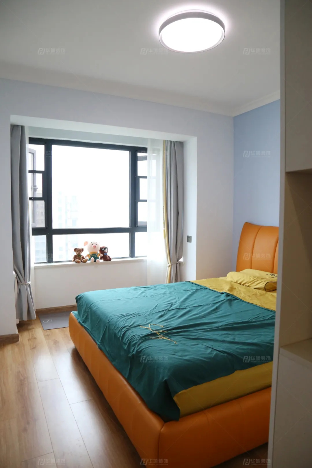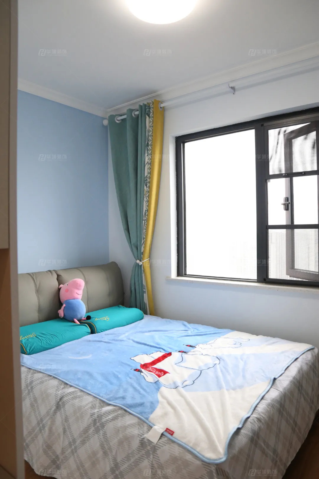 兩個(gè)次臥一粉一藍(lán),沒(méi)有太多的陳設(shè),簡(jiǎn)單以床+衣柜+窗簾點(diǎn)綴,暖暖的,超有愛(ài)。