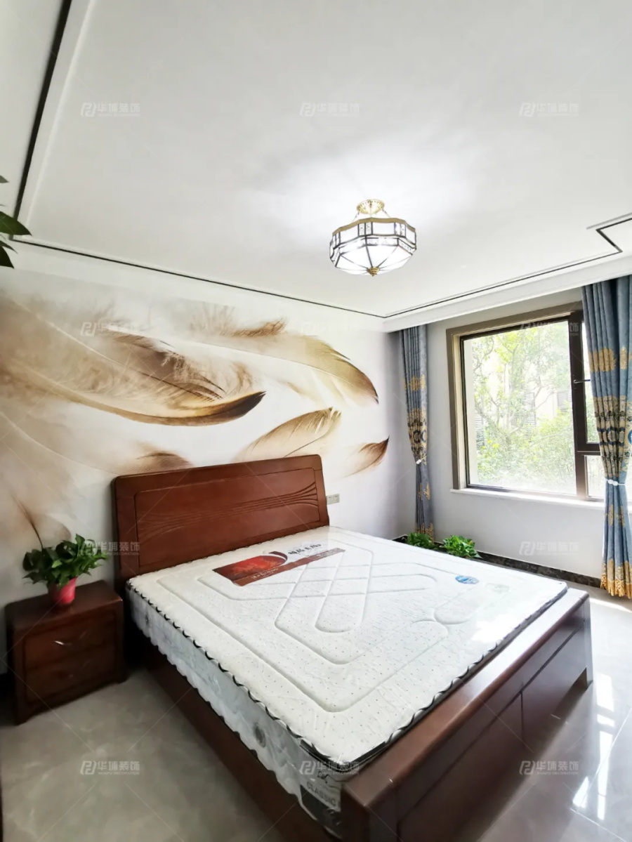 很喜歡主臥的背景墻,飄零的羽毛,隨風逸動,是愛情的美好,恰似我要的溫柔。
