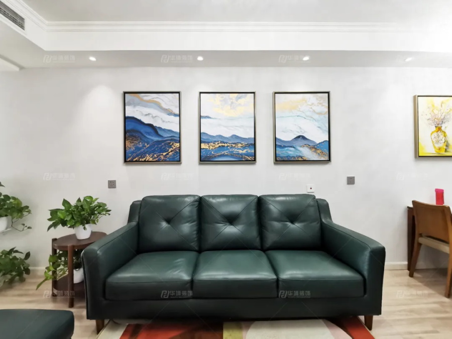 客廳大面積留白,純凈的空間,干凈的視角,給人舒心的居住體驗(yàn)。業(yè)主取消了茶幾的陳設(shè),將這里作為瑜伽修身的場(chǎng)所。沙發(fā)選用的是深綠色皮質(zhì),平鋪舒緩、寧和的情緒。