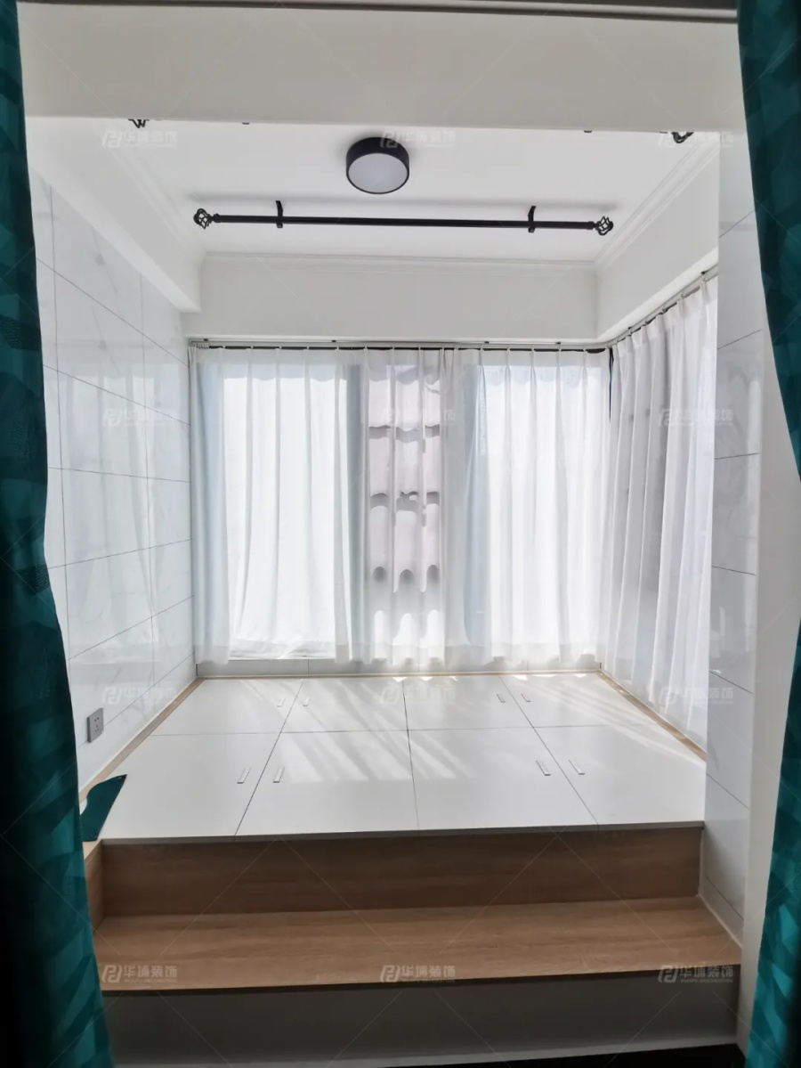 陽臺(tái)做了定制榻榻米,周身薄紗窗簾阻擋強(qiáng)光的圍射。待到暖陽微醺,倚靠在這里,或小憩、或品讀,怎個(gè)愜意了得!