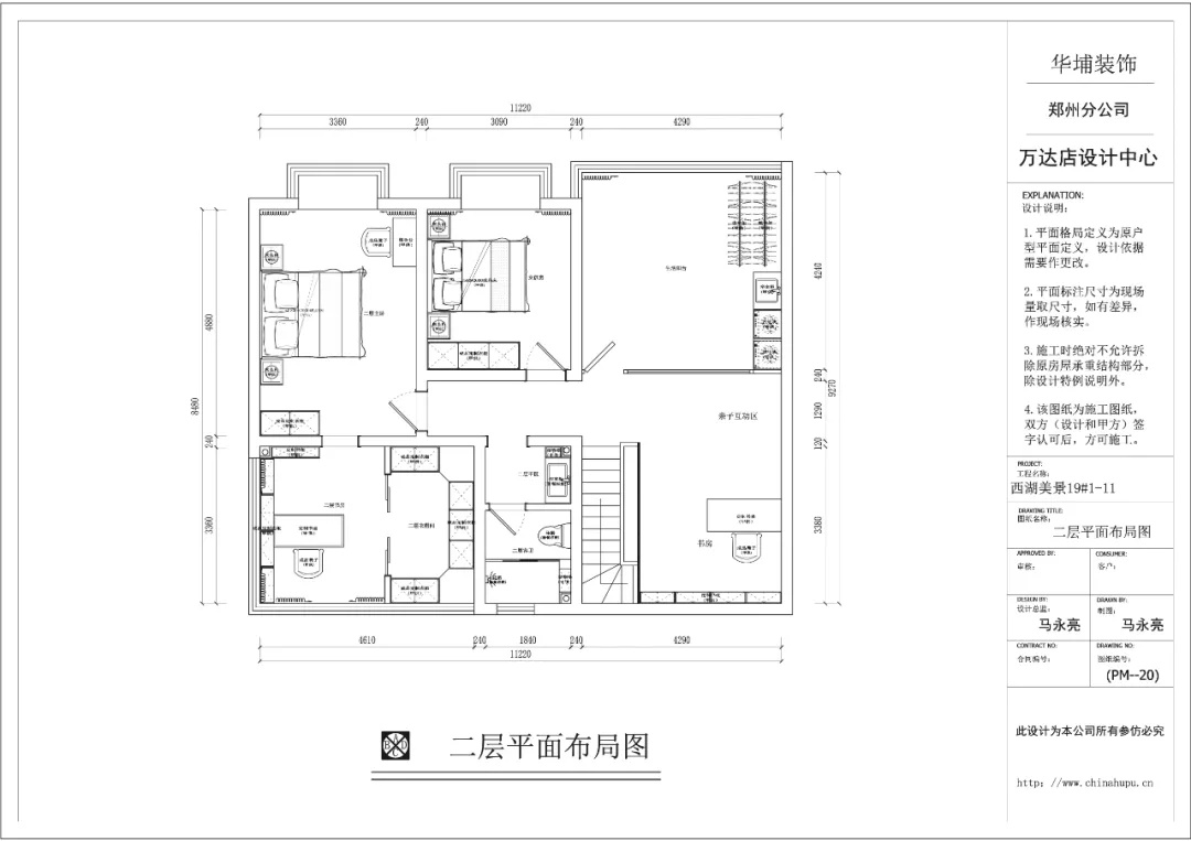 (7)原露臺(tái)2預(yù)留門(mén)體封住,改到墻體中間,原次臥3改成二樓主臥,并融合原露臺(tái)2與原次臥3空間,做成主臥大套間。