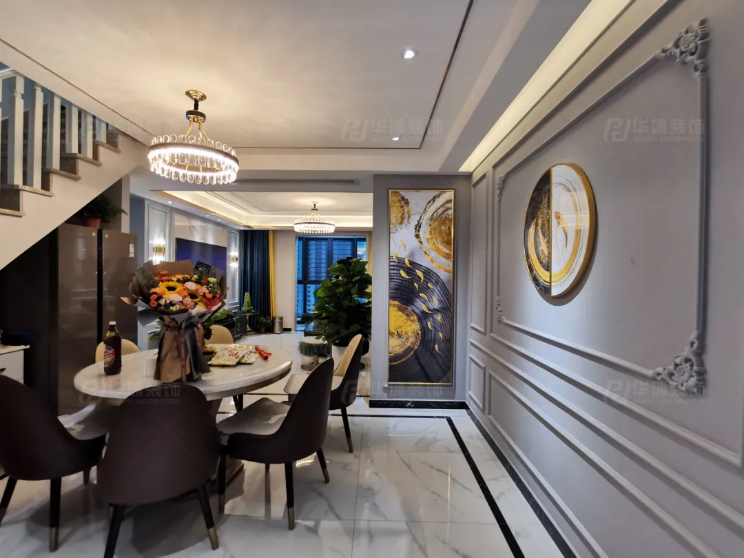 注入細(xì)膩的情感,演繹不一樣的奢華!客廳,是對(duì)美式與輕奢的梳理與吸納。簡(jiǎn)化的石膏線,光潔的石材,布藝沙發(fā),金屬元素,奢華的質(zhì)感,讓空間自然而然地發(fā)生碰撞。
