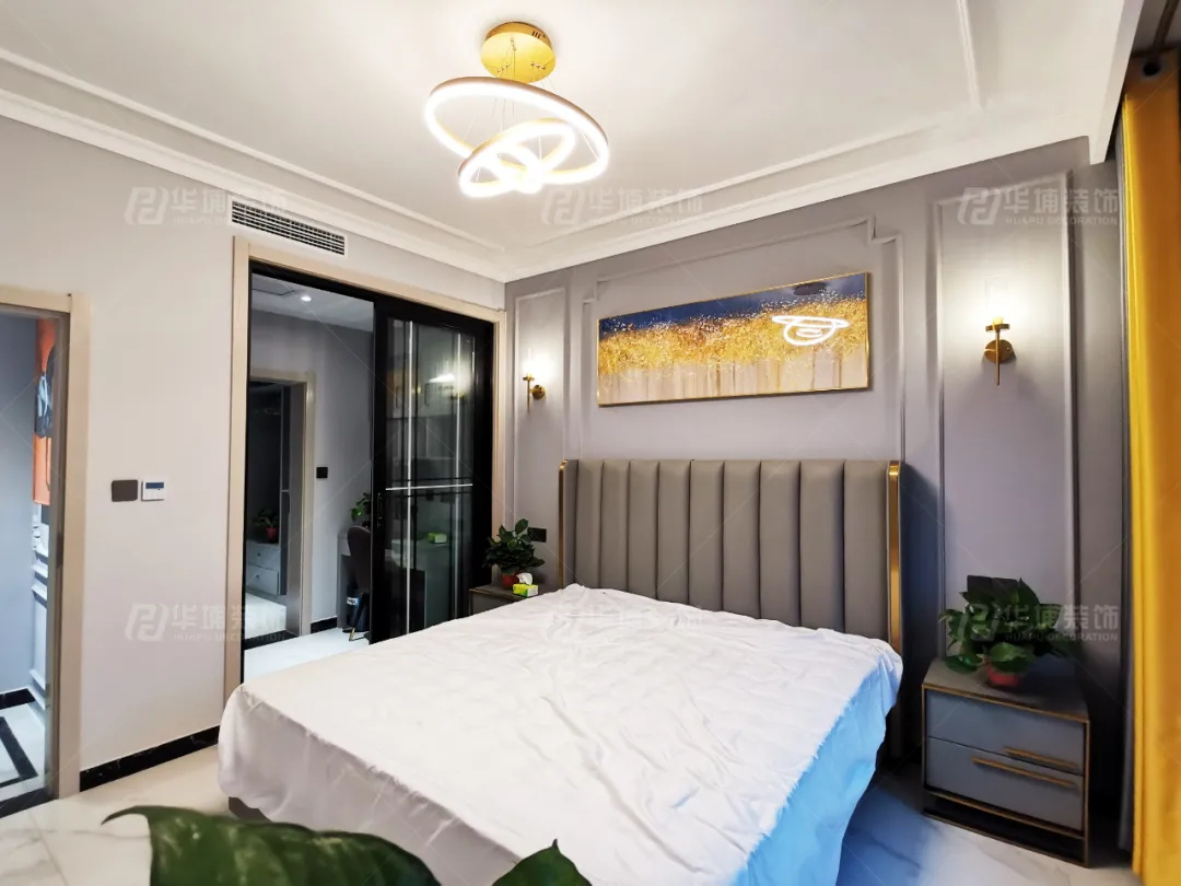 為了更好的陪伴孩子,一樓和二樓都設(shè)計(jì)了主臥套間,兼容梳妝臺(tái)、衣帽間。“當(dāng)窗理云鬢,對(duì)鏡貼花黃”,精致生活從精致的自己開(kāi)始。主臥采用高級(jí)灰做主色調(diào),亮黃、金屬色局部點(diǎn)綴,讓空間更加跳躍,更有層次感,盡顯奢華的品質(zhì)。