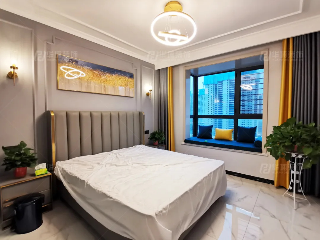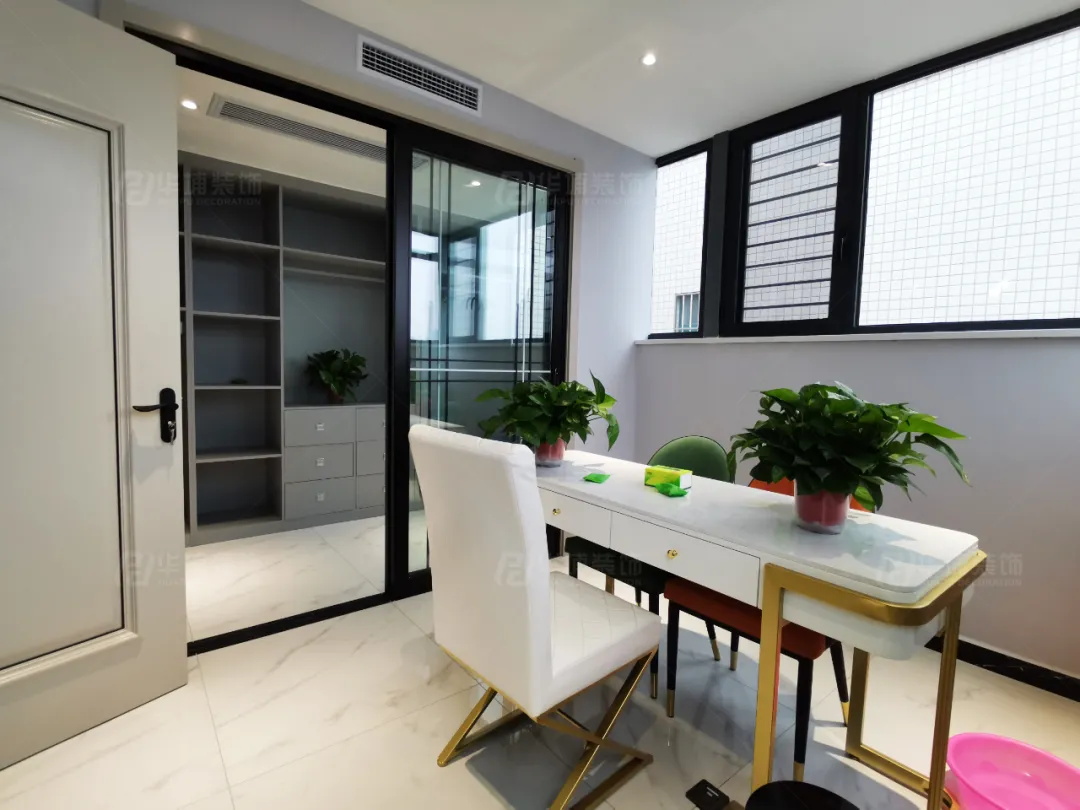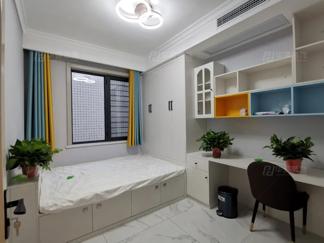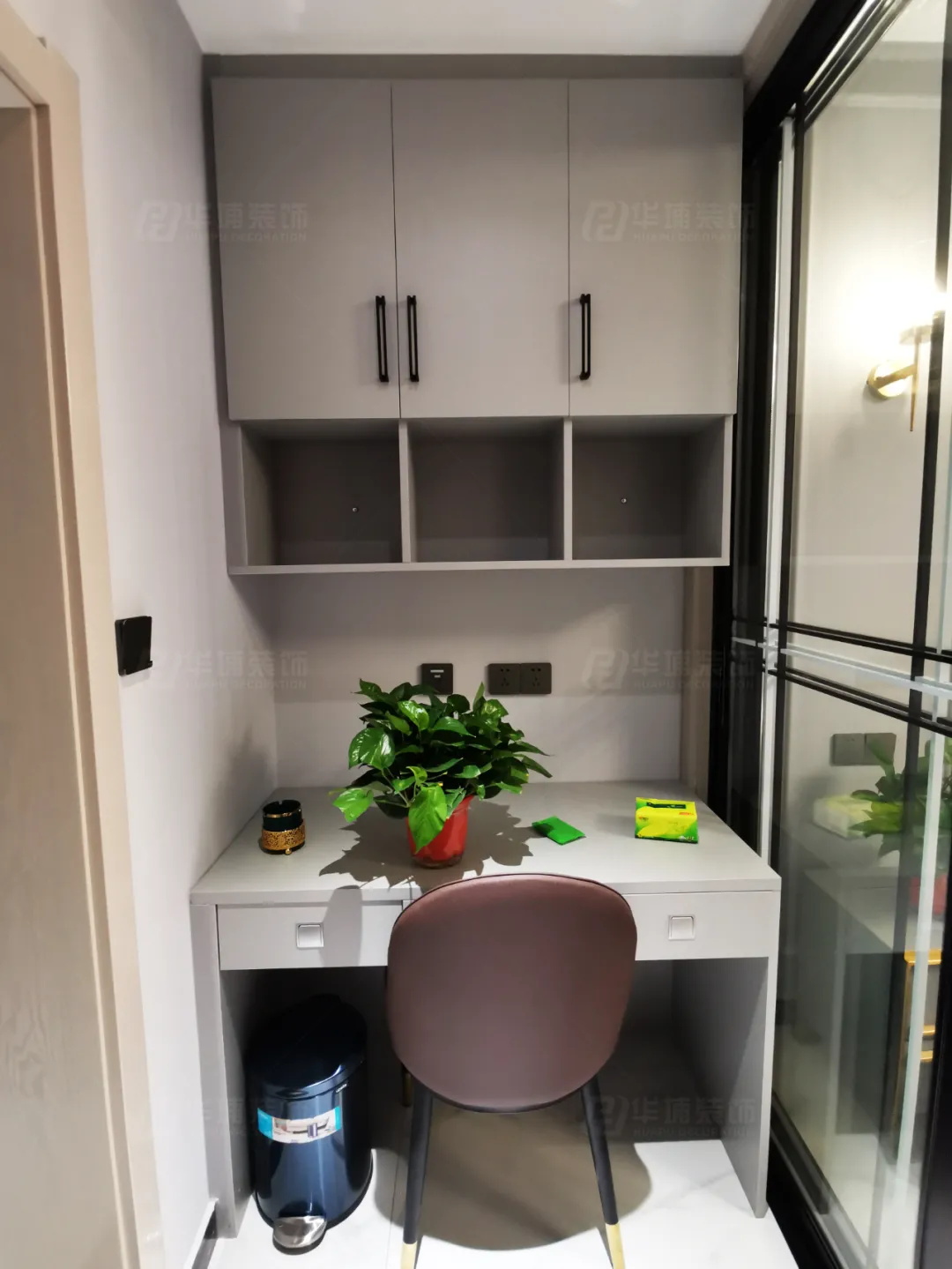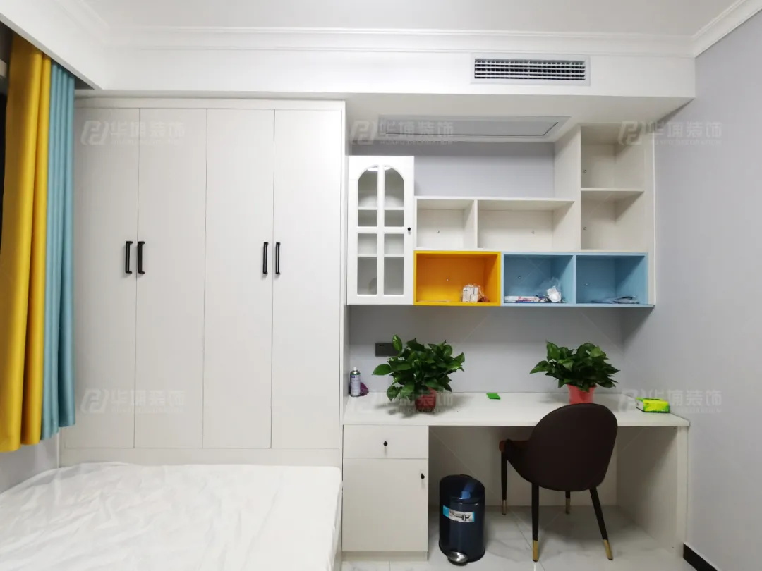 客房即多功能房,榻榻米+書(shū)桌+衣柜,純凈的著色,實(shí)用的搭配,明窗凈幾舒華茵。