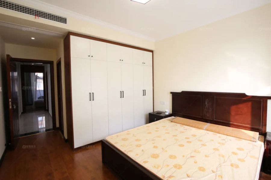 主臥深淺之處動容,暖黃的柔和,深色實木的溫潤,消除一天的煩擾和疲倦。