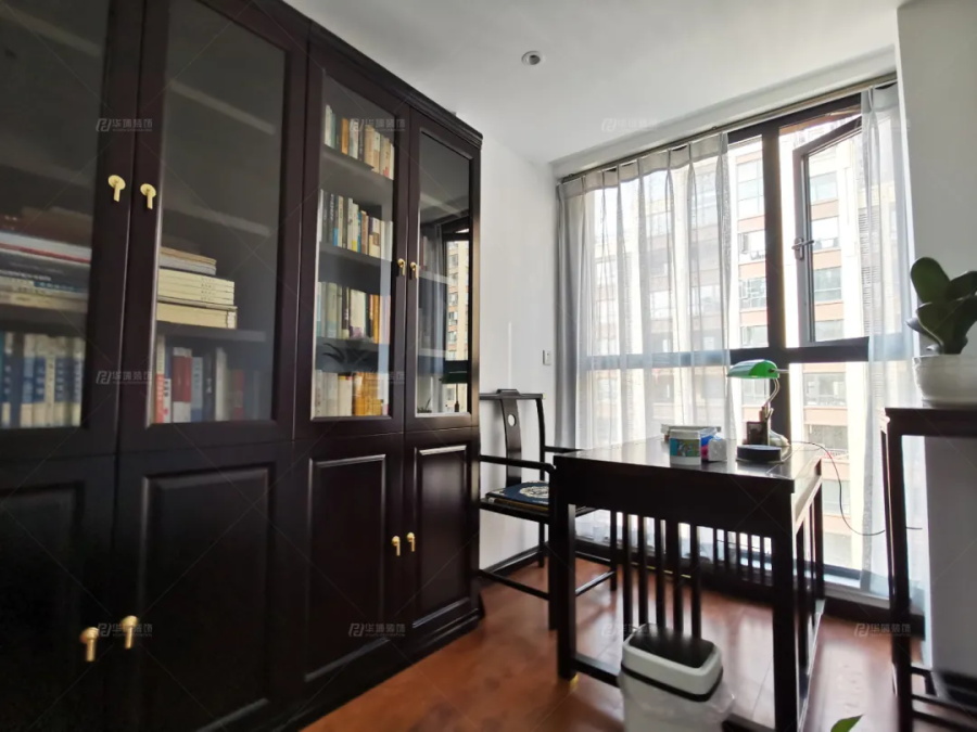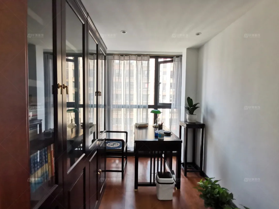 書房是改動后呈現(xiàn)的,紅袖添香,墨香縈繞,專注于此刻的寧靜。