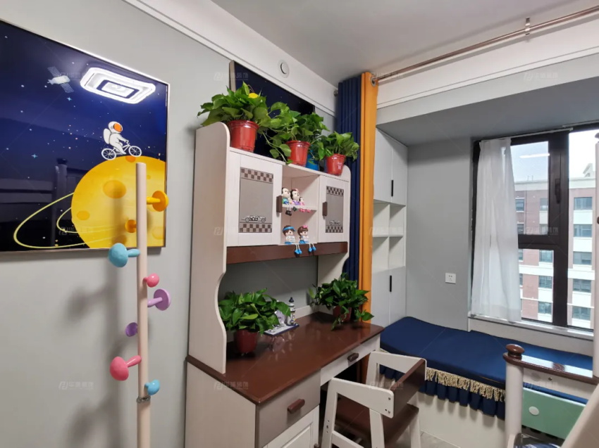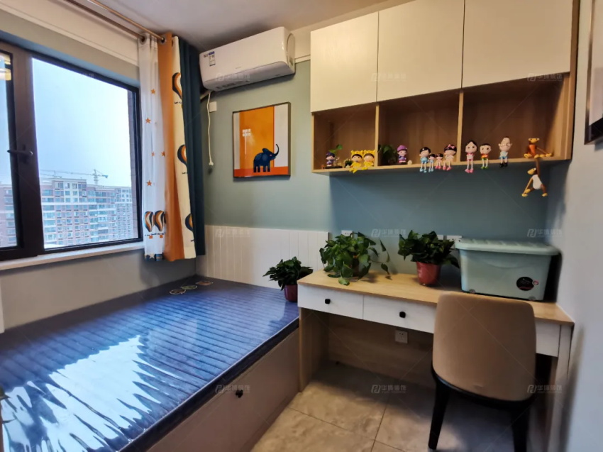 最小的兒童房做了榻榻米,1.5米的單人床,一張書桌,一個衣柜,待小寶入學,這將是伴他成長的地方。