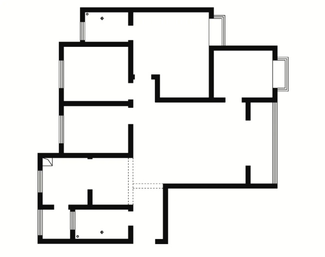 2)打掉廚房內(nèi)與入戶一側洗手間平行的凸出墻體,增加廚房內(nèi)部的操作臺。