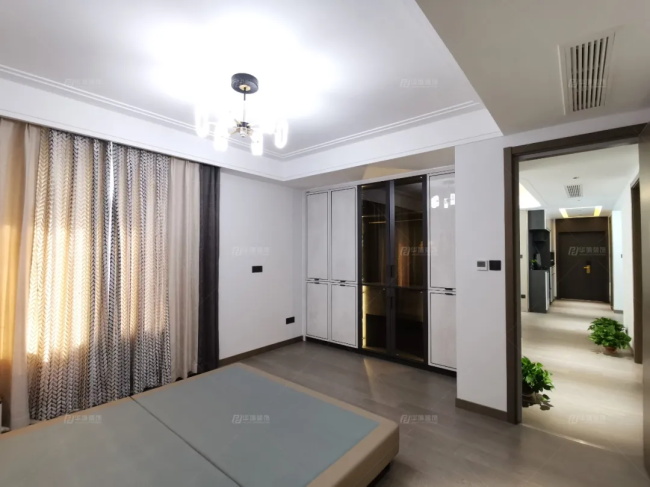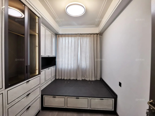 次臥是榻榻米房間,多儲物、休閑。這里有個小心思設計,衣柜櫥窗內(nèi)部裝了筒燈,而且柜門是透明的,這樣后期方便挑選衣物。