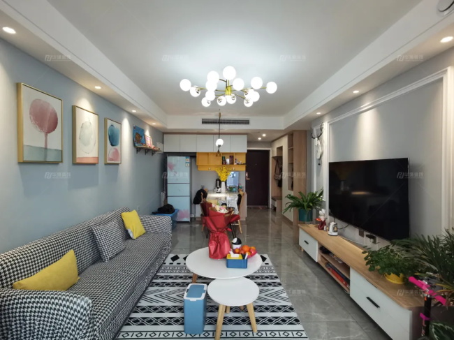 生活需要“斷舍離”,那就從客廳開始,聚焦純粹與質(zhì)樸??蛷d在色彩的選用上,以高級(jí)灰、淡藍(lán)色、原木色、亮黃色修飾空間,簡約的家具,流暢的線條,給人最舒服的治愈。