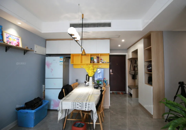 (1)原戶型沒有鞋柜的位置,砸掉廚房入戶門一側(cè)墻體做鞋柜;